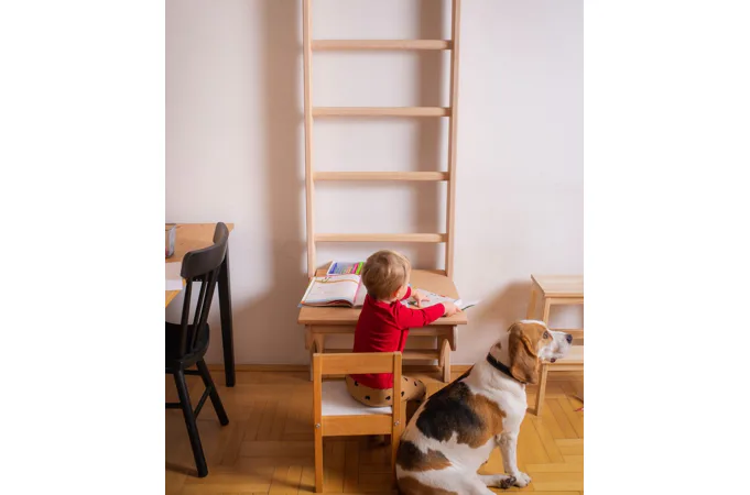 Dětský stoleček je doplněk k žebřinám BenchK 110.