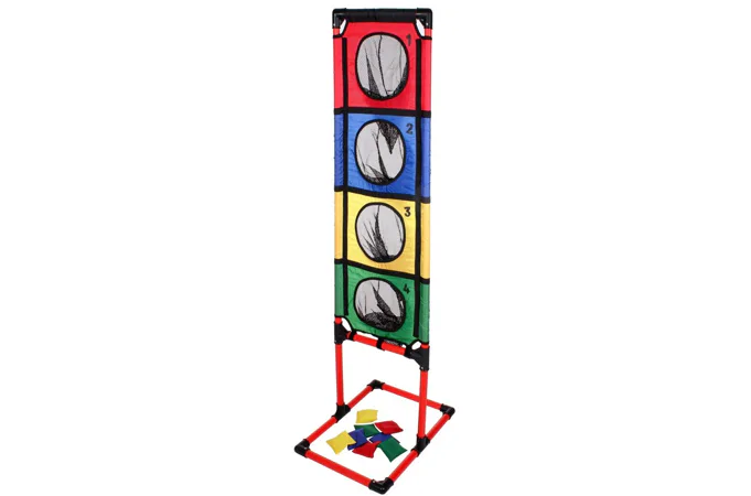 Merco Vertex Target Throw je zábavná hra pro celou rodinu, kdy je cílem trefit otvor tzv. bean bagem, tedy sáčkem vyplněným fazolemi a gumovými kuličkami. Celá sada obsahuje skládací terč vyrobený z polyesteru a lehké PVC konstrukce a osmi barevnými sáčky. Hru můžete hrát sami a trénovat tak svou přesnost spodního hodu, nebo hrajte s přáteli a vytvořte si svou soutěž o to, kdo získá nejvíce bodů. Terč má po jednoduchém složení rozměry přibližně 172 x 44 x 62 cm a hmotnost necelé 2 kg. Pokud hledáte novou hru do školy, pro dětské kroužky nebo pro svou rodinu, Vertex Target Throw je to pravé!