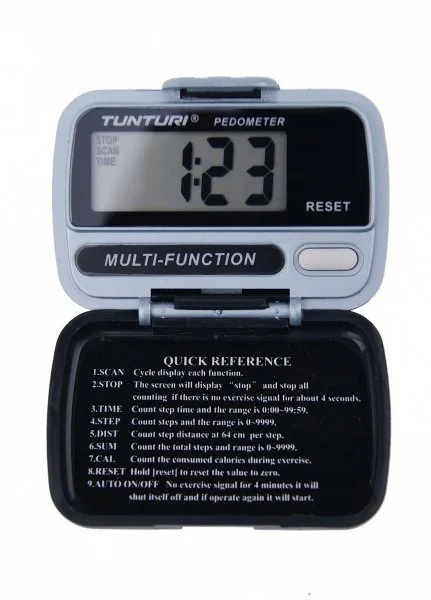 Digitální krokoměr Tunturi je skvělý nástroj pro sledování denního počtu kroků. Krokoměr sleduje, kolik kroků každý den podniknete, kolik času vám to zabere, jakou vzdálenost urazíte a kolik kalorií spotřebujete. Velká obrazovka s černým světlem je snadno čitelná a lze ji chránit zavřením krytu.