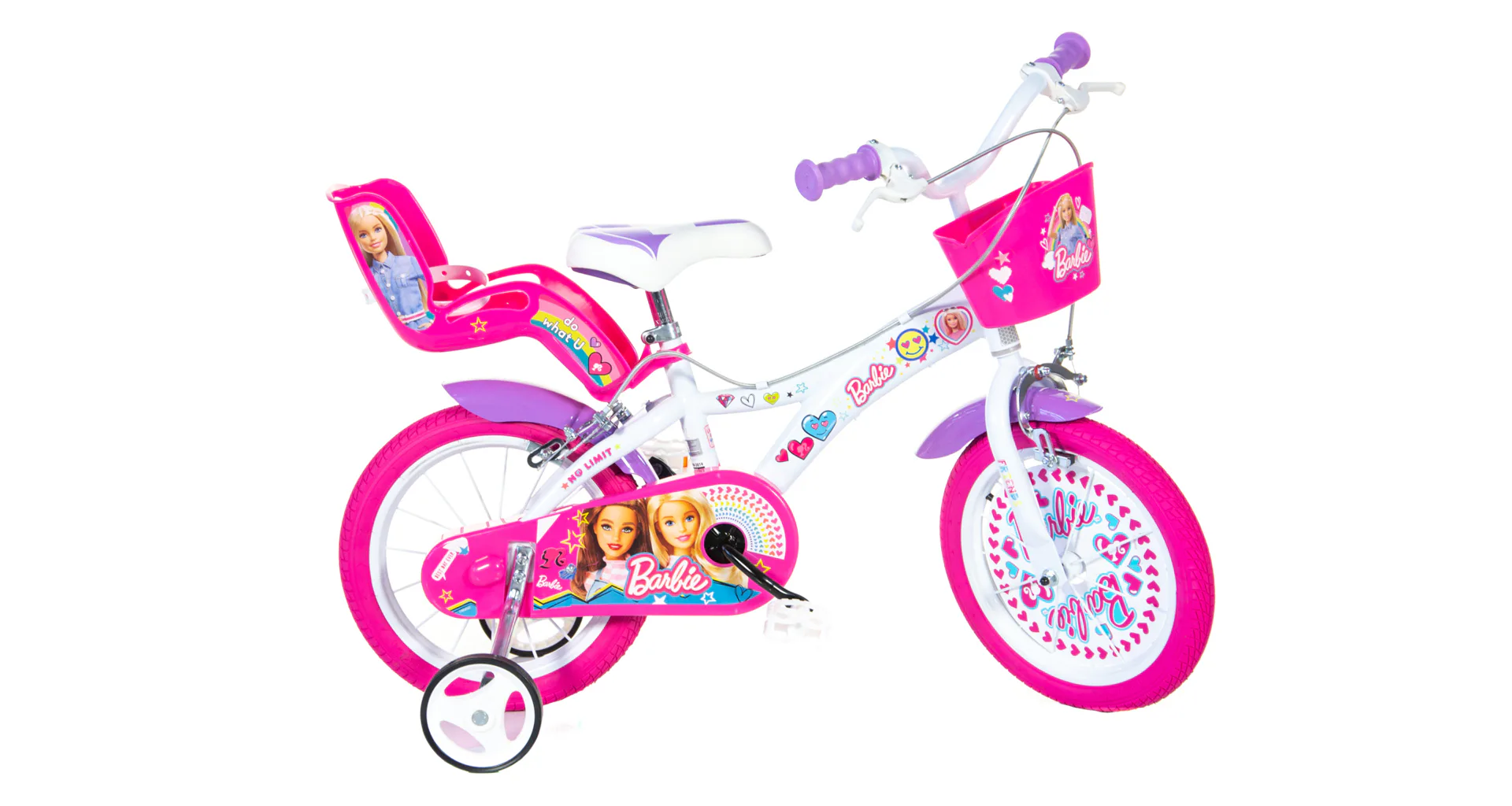 Dětské kolo Dino Bikes 164RN BARBIE se vyznačuje propracovaným designem dávajícím kolu líbivý vzhled. Doporučené na výšku postavy 107-127 cm, je tedy vhodné pro děti ve věku 5-6 let.