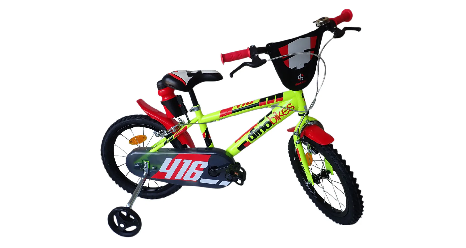 Dětské kolo Dino Bikes 416US se vyznačuje propracovaným designem dávajícím kolu sportovní vzhled. Svítivá barva je také líbivý prvek, který vylepšuje vzhled kola. Doporučené na výšku postavy 107 -130 cm, je tedy vhodné pro děti ve věku 5-6 let.