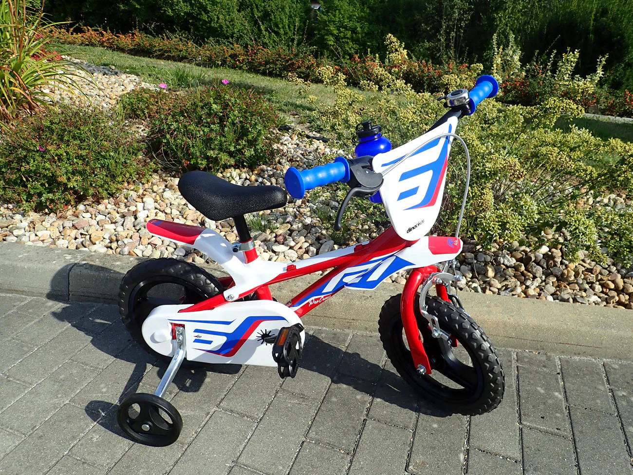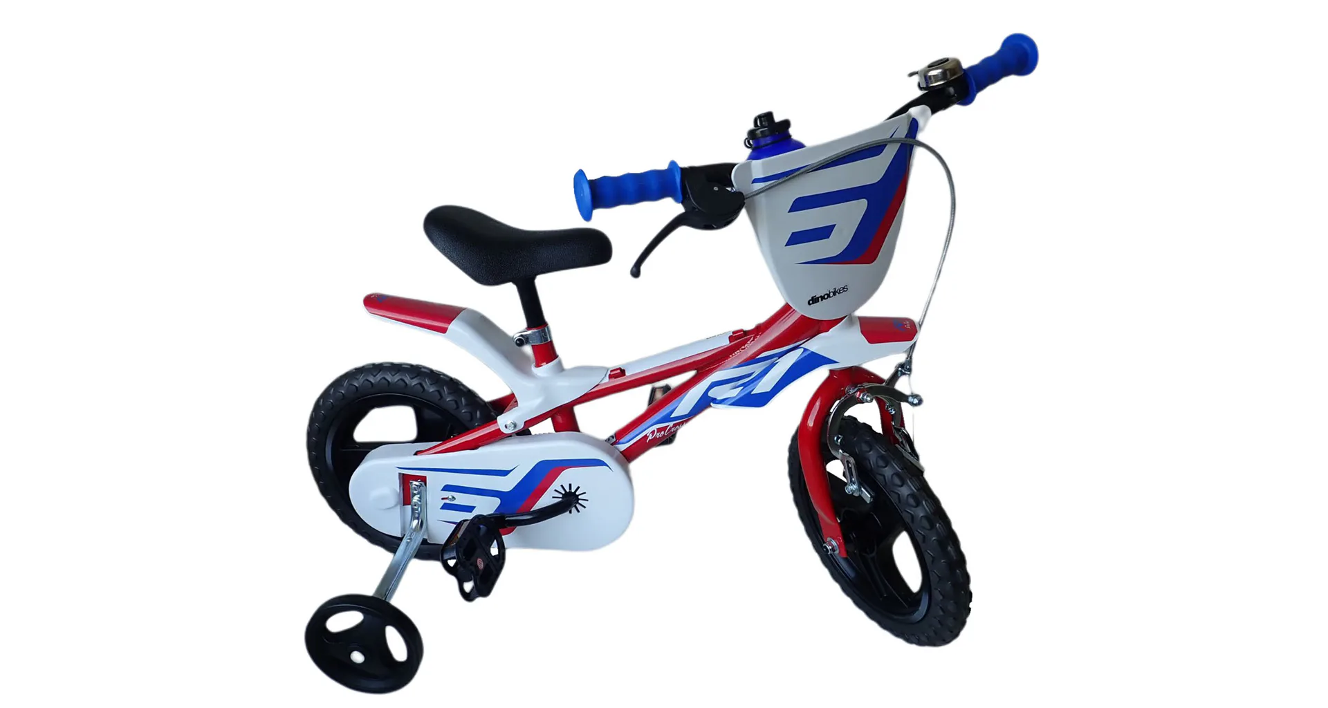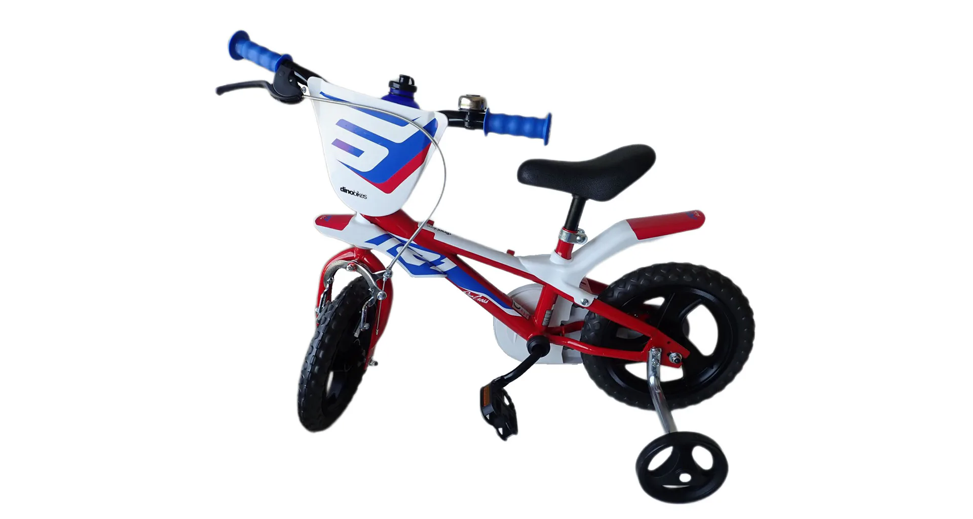 Dětské kolo Dino Bikes 812L R1 se zajímavou tříbarevnou - červeno-modro-bílou kombinací barvy rámu se vyznačuje propracovaným designem dávajícím kolu líbivý vzhled. Doporučené na výšku postavy 87-110 cm, je tedy vhodné pro děti ve věku 3-4 let.