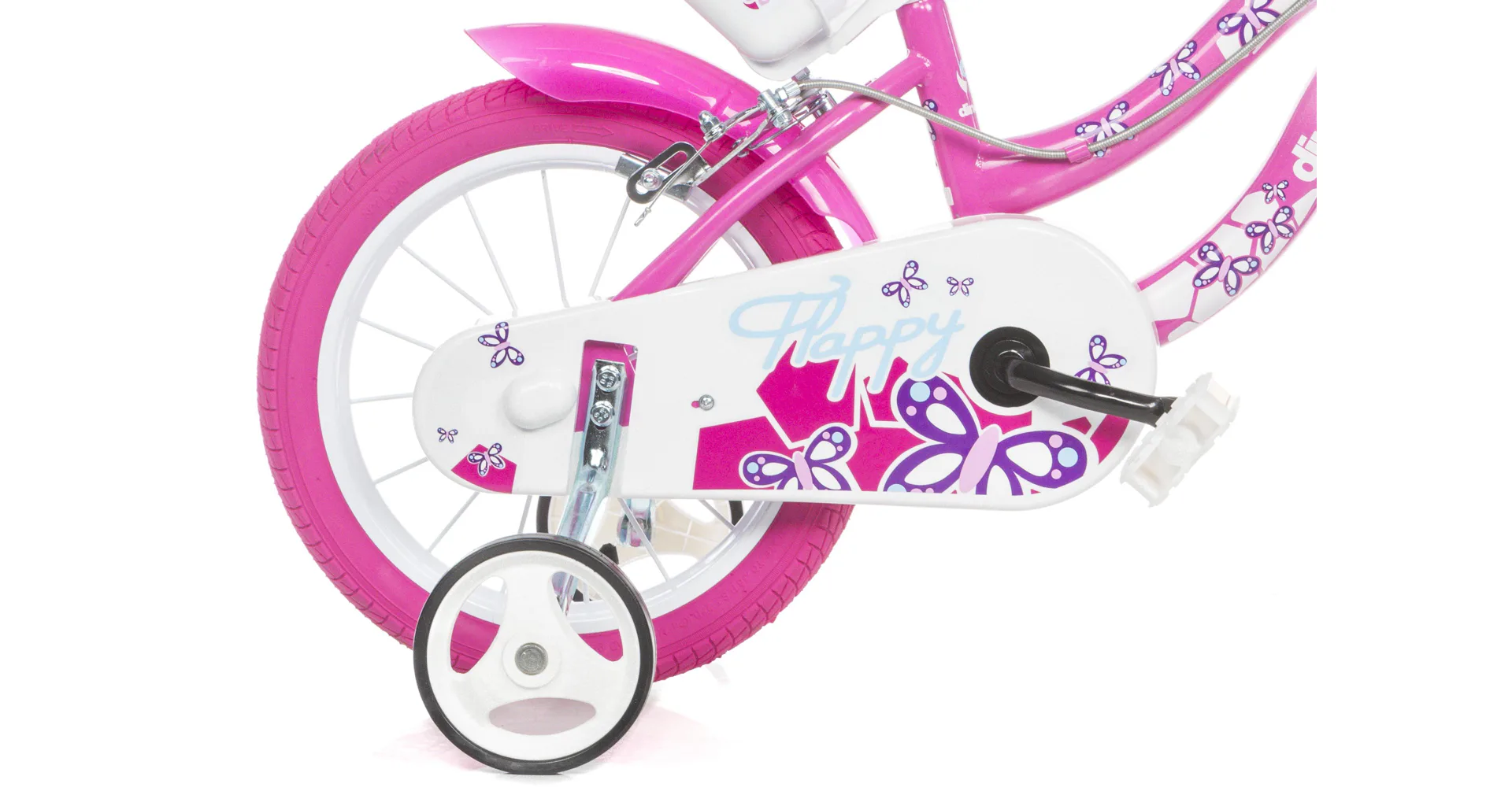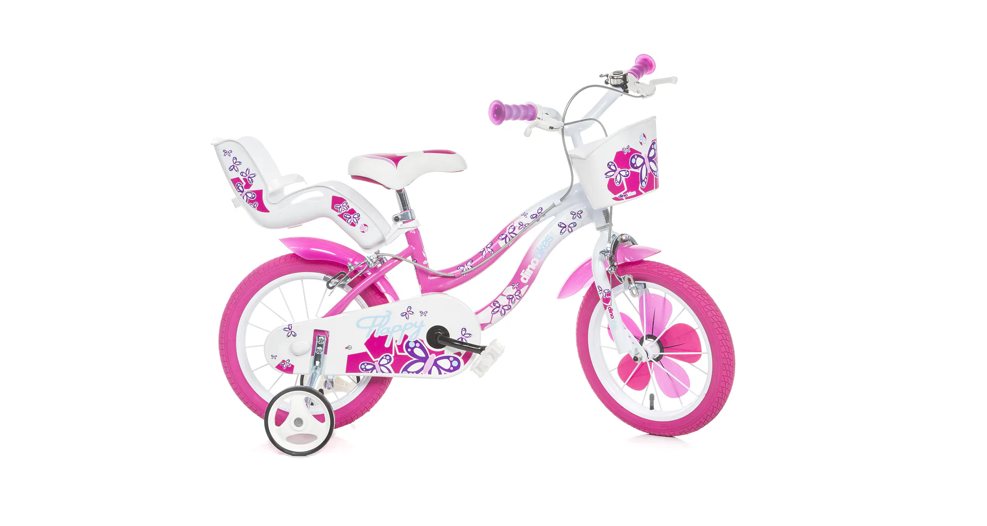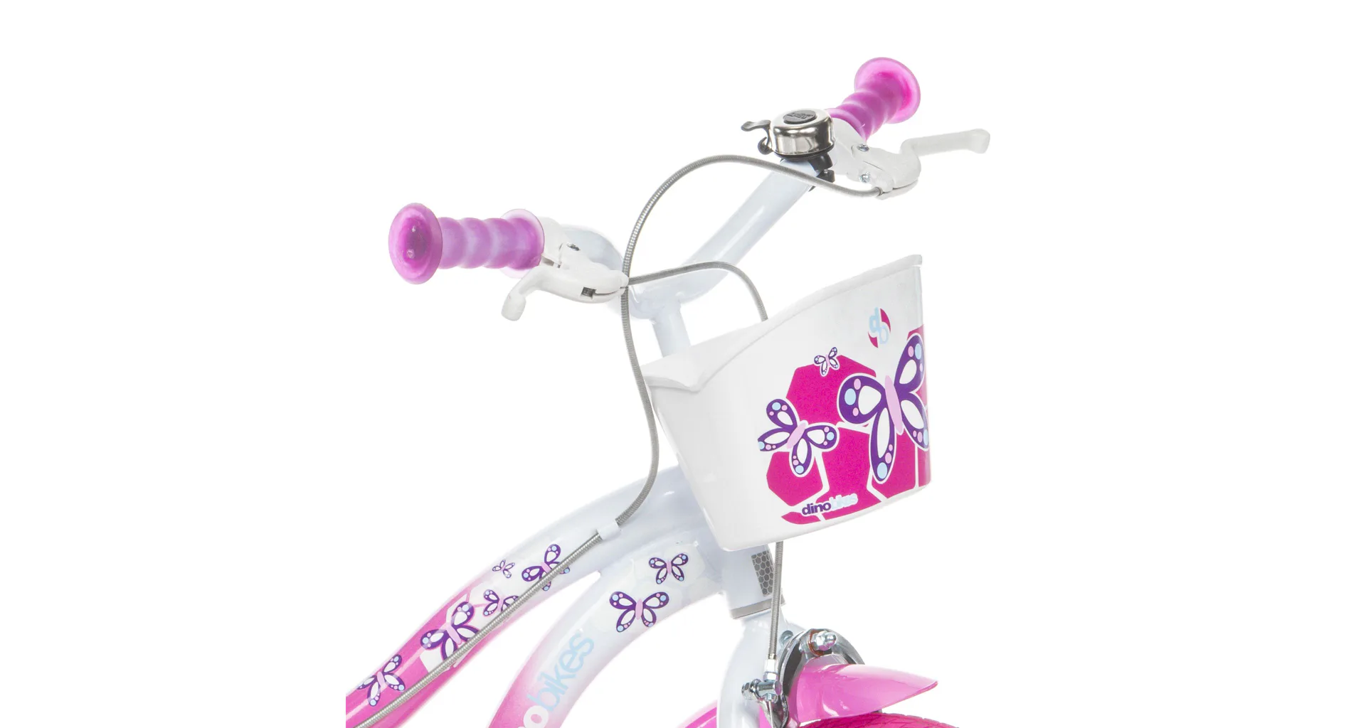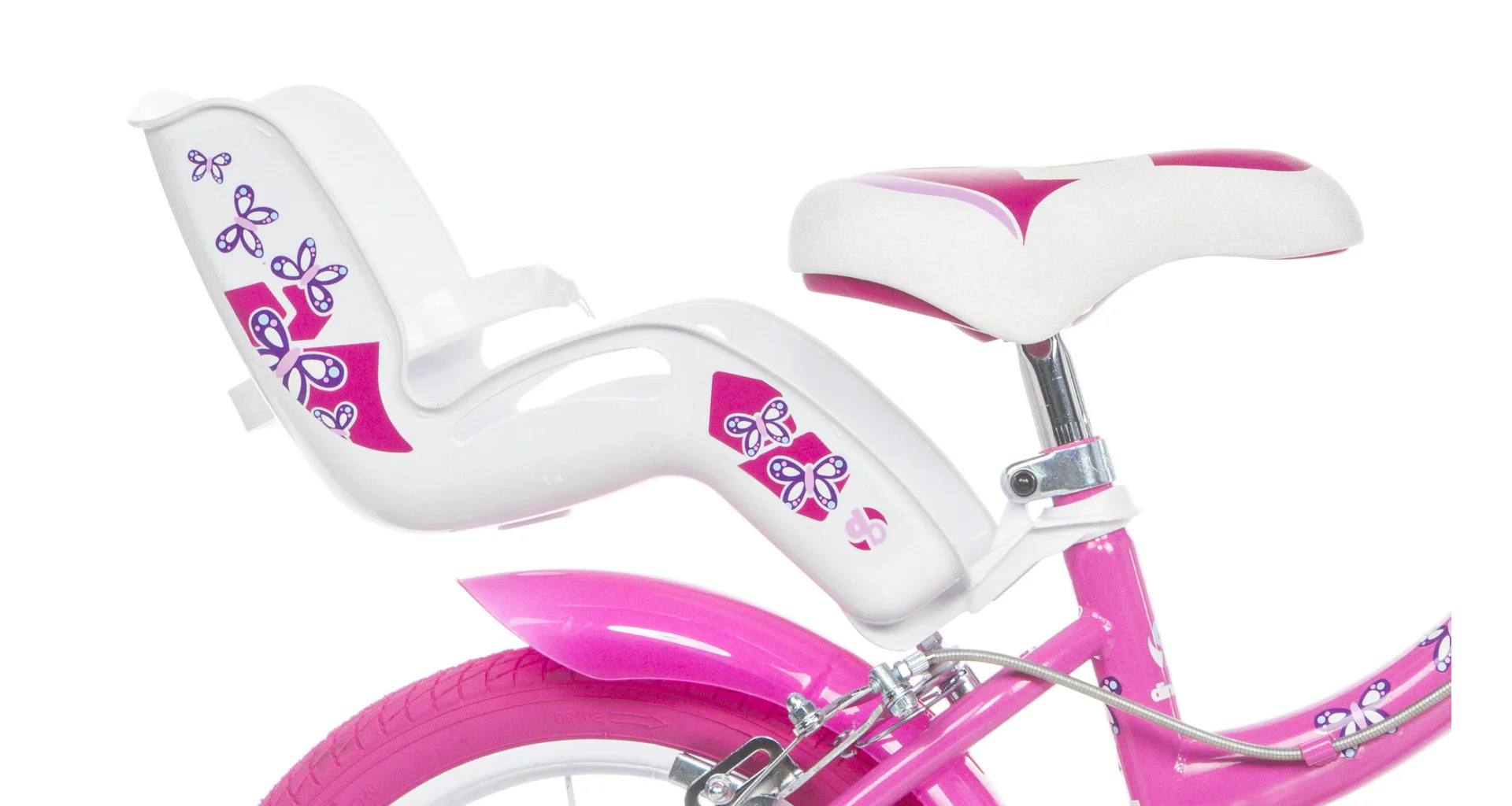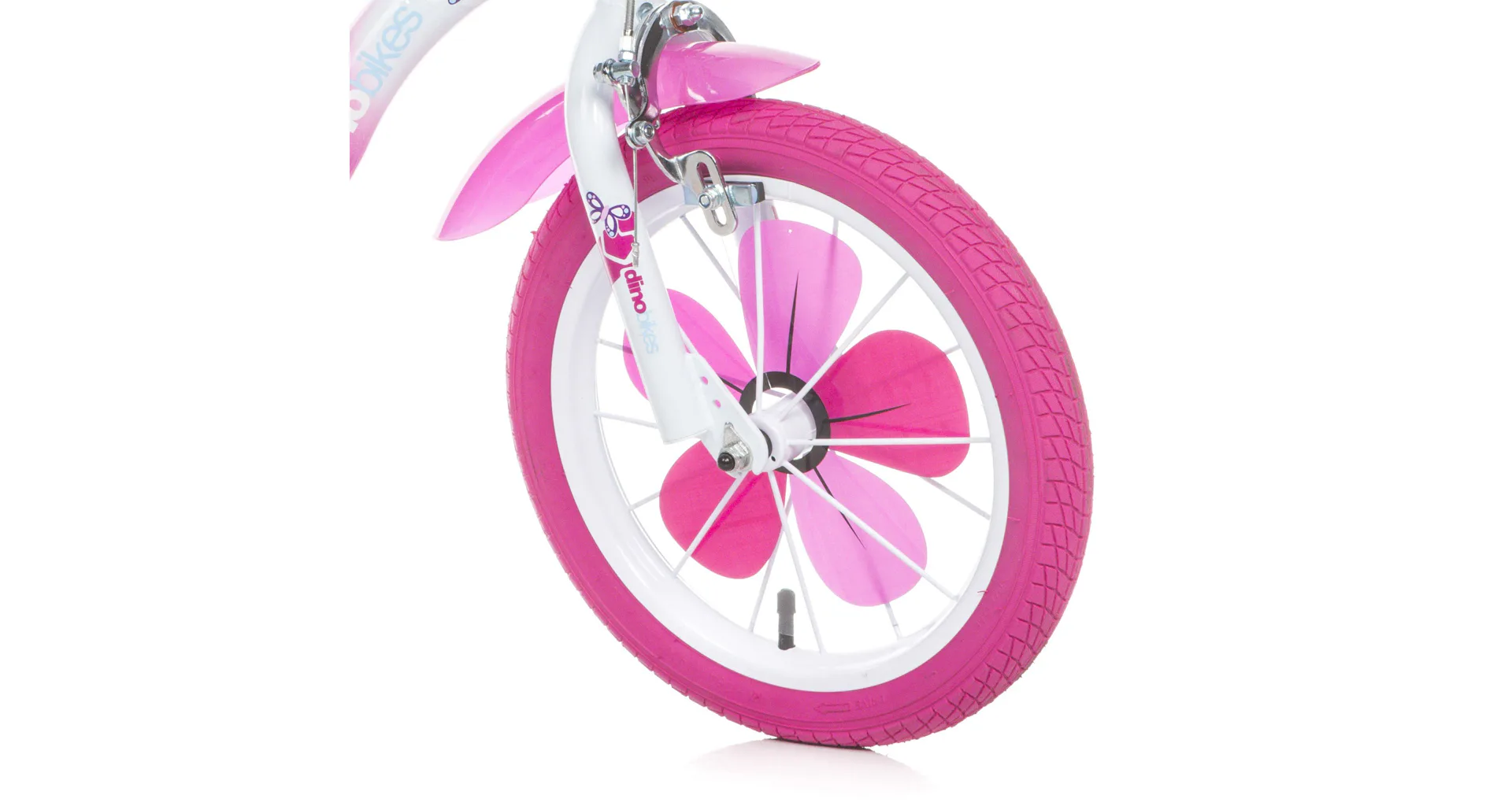 Dětské kolo Dino Bikes s potiskem FLAPPY se vyznačuje propracovaným designem dávajícím kolu líbivý vzhled v bílo-růžové variantě. Ke kolu patří i doplňky: plastový košík na řídítkách, plastový držák na panenky pod sedlem kola a zvonek.