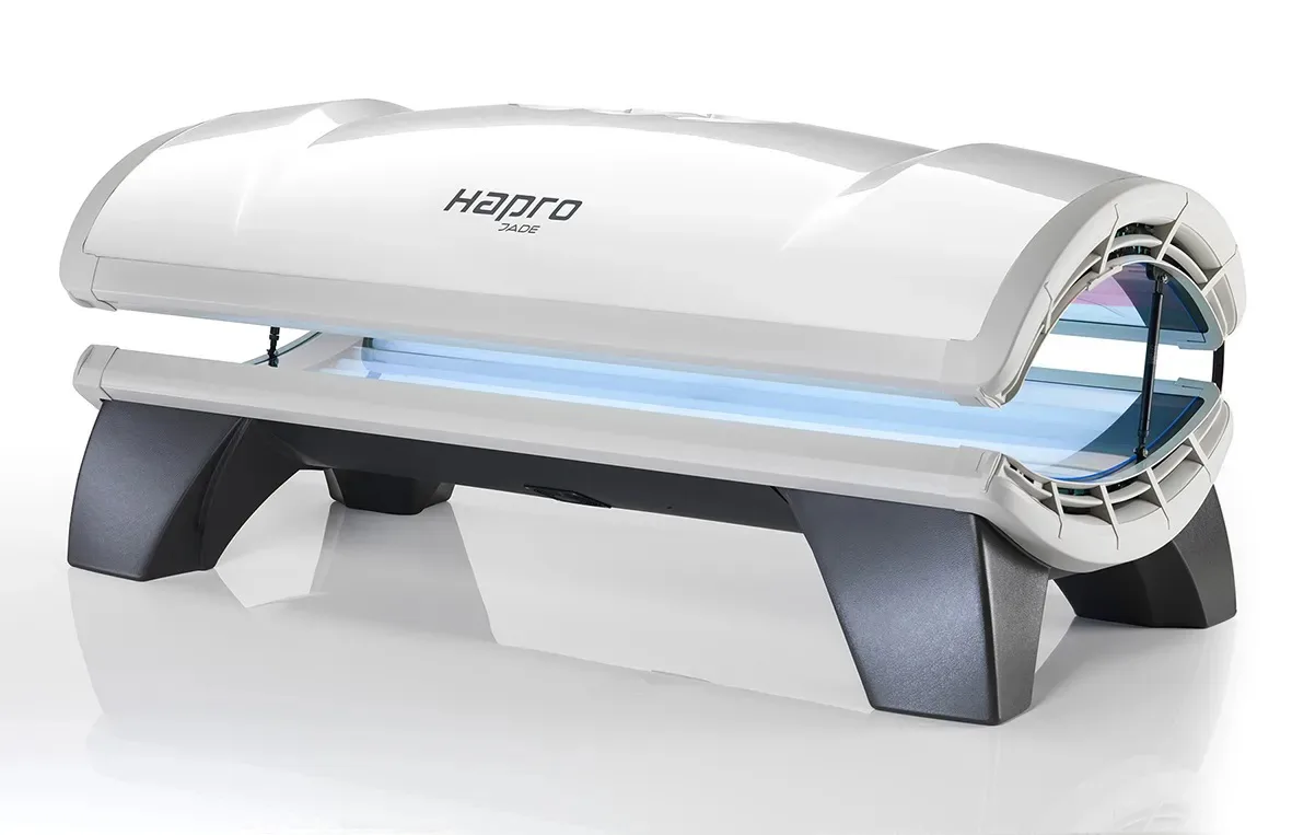 Domácí solárium HAPRO JADE 24 Combi Lcje domácí solárium, které se svým designem hodí úplně všude. Praktická konstrukce vám zaručí, že opalovací lampy budou pokaždé v optimální vzdálenosti od vašeho těla. Při opalování nikdy nezapomínejte na ochranu očí, a proto noste ochranné brýle.