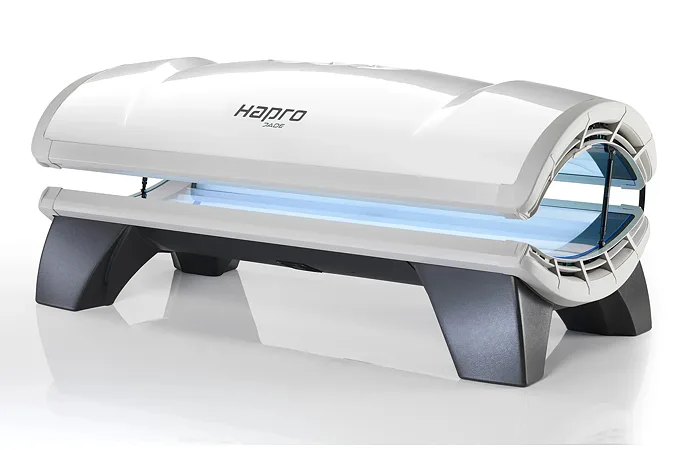 Domácí solárium HAPRO JADE 24 Combi je domácí solárium, které se svým designem hodí úplně všude. Praktická konstrukce vám zaručí, že opalovací lampy budou pokaždé v optimální vzdálenosti od vašeho těla. Při opalování nikdy nezapomínejte na ochranu očí, a proto noste ochranné brýle.