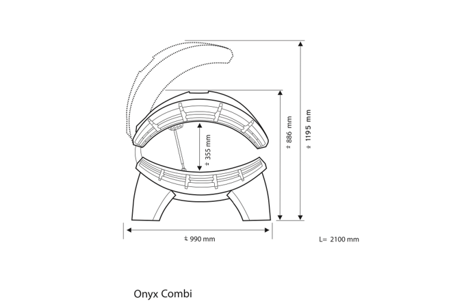 HAPRO ONYX 26/1 Combi disponuje až 22 opalovacími lampami o výkonu 100 W a 4 opalovacími lampami o výkonu 80 W. Tento model je také vybaven 400 W vysokotlakým opalovacím zařízením na obličej. Tato vysokotlaká lampa poskytuje optimální opálení obličeje a také poskytuje pohodlné infračervené teplo. Pomocí analogového ovládacího panelu si můžete snadno nastavit délku opalování. Pro pohodlnější manipulaci je ovládací panel možno používat i uvnitř solária. Solárium je navíc vybaveno chladícím ventilátor pro svěží pocit při opalování. (Chladící ventilátor lze zapnout a vypnout přímo uvnitř solária)