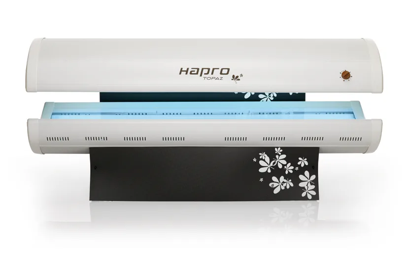 Domácí solárium HAPRO TOPAZ 24/1 C je domácí solárium, které se svým designem hodí úplně všude. Praktická konstrukce vám zaručí, že opalovací lampy budou pokaždé v optimální vzdálenosti od vašeho těla. Při opalování nikdy nezapomínejte na ochranu očí, a proto noste ochranné brýle.