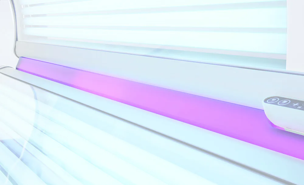 HAPRO Connecting Shield Plus díky ambientnímu osvětlení vytváří vytváří relaxační atmosféru během opalování, kterou ještě podtrhne Soundbox, který umožňuje přehrávat hudbu.