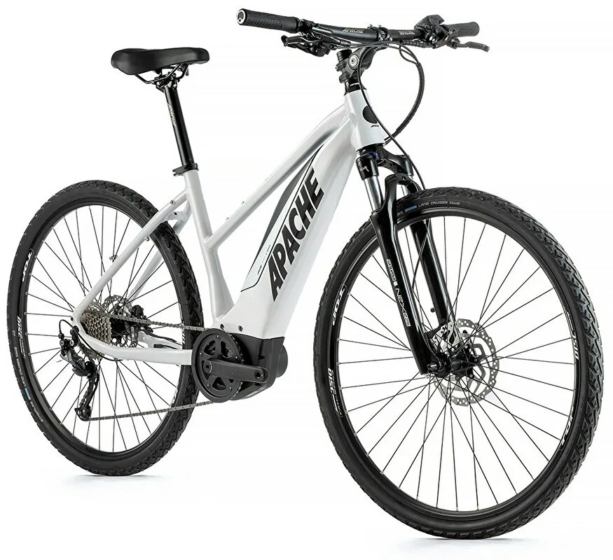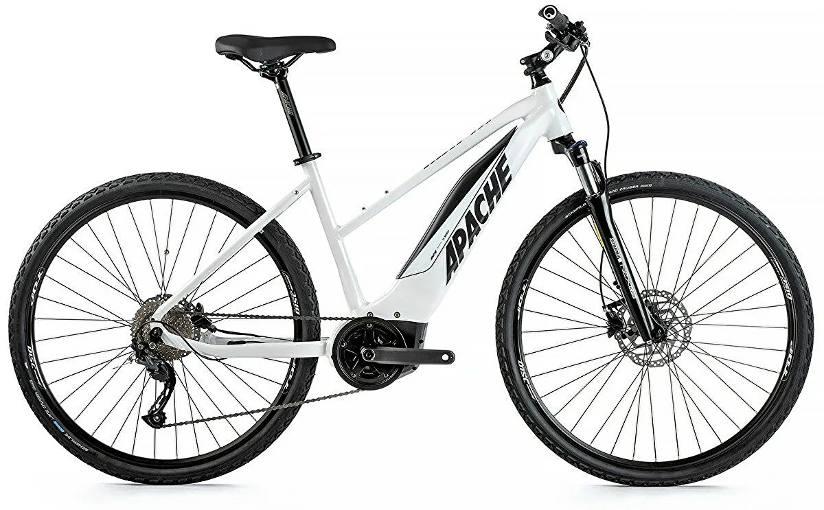 APACHE Matta 3 Bosch Cross je horské elektrokolo vhodné nejen pro pány. APACHE Matta 3 Bosch Cross je e-bike s plně integrovanou baterií v rámu kola, sportovním designem a odpruženou přední vidlicí. Kapacita baterie je 13,4 Ah (500 Wh).