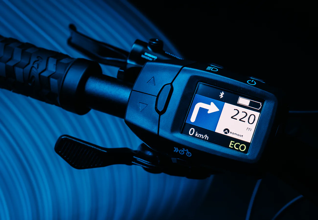 Nedílnou součástí e-biku je LCD displej Panasonic. Slouží současně jako displej a zároveň ovladač elektrokola.