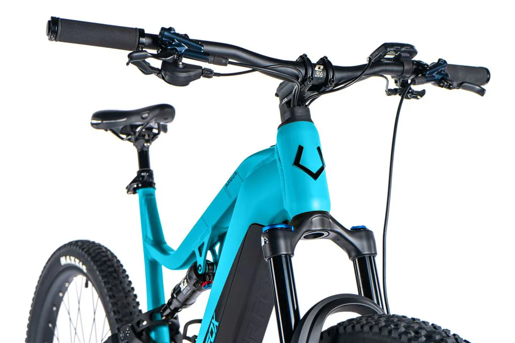 Leader Fox ARGUS je horské celoodpružené elektrokolo vhodné nejen pro pány. ARGUS je e-bike s plně integrovanou baterií v rámu kola, sportovním designem, odpruženou přední vidlicí a zadním tlumičem. Kapacita baterie je 23,2 Ah (835 Wh).