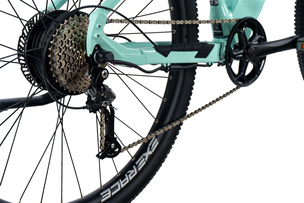 Komfort e-biku zajišťuje bohatá základní výbava s odpruženou vidlicí, kotoučovými brzdami a stabilními 29“ zapletenými koly.