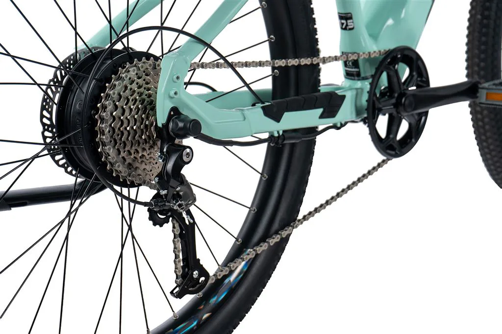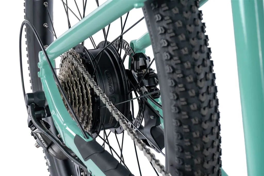 Komfort e-biku zajišťuje bohatá základní výbava s odpruženou vidlicí, kotoučovými brzdami a stabilními 29“ zapletenými koly.