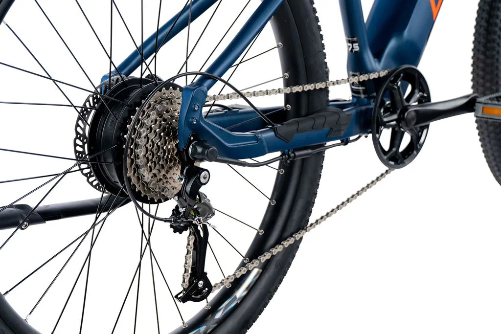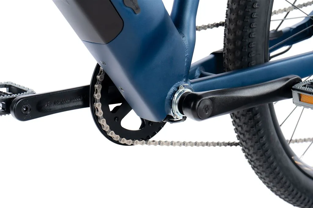 Komfort e-biku zajišťuje bohatá základní výbava s odpruženou vidlicí, kotoučovými brzdami a stabilními 29“ zapletenými koly.