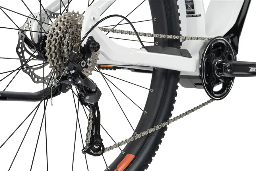 Komfort e-biku zajišťuje bohatá základní výbava s odpruženou vidlicí, kotoučovými brzdami a stabilními 29“ zapletenými koly.