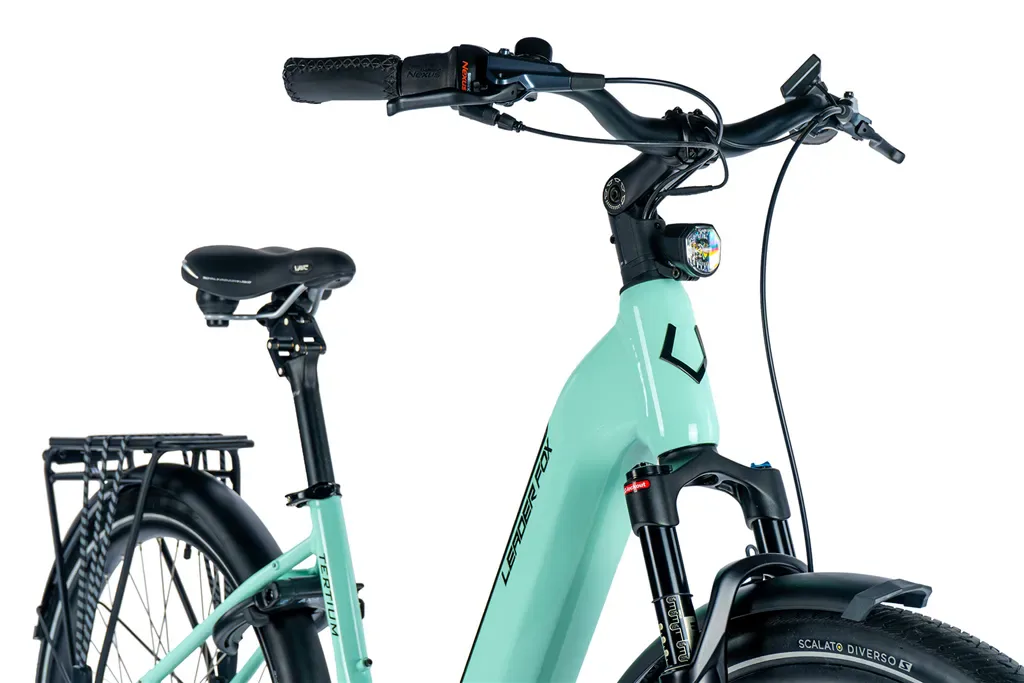 Elektrokolo LEADER FOX TERTIUM, chytrá volba pro jízdu ve městě. S jednoduchým nastupováním, lehkým rámem a snadným ovládáním se budete v úzkých uličkách pohybovat s lehkostí a jistotou.
