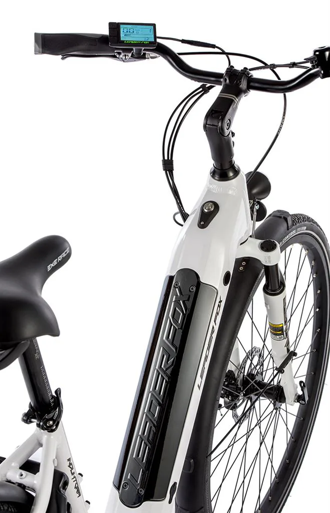 Leader Fox INDUKTORA je městské elektrokolo s elegantním designem, odpruženou přední vidlicí, lehkým rámem a nízkým nástupem. Kapacita baterie je 14 Ah (504 Wh).