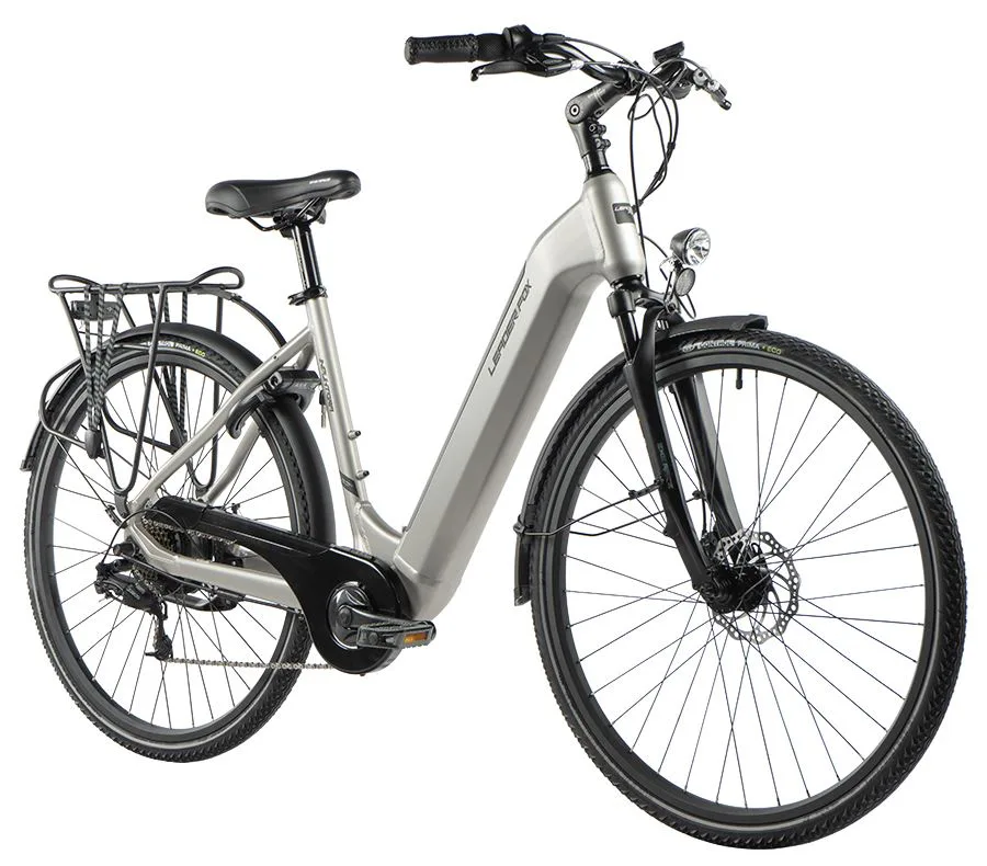 Leader Fox INDUKTORA je městské elektrokolo s elegantním designem, odpruženou přední vidlicí, lehkým rámem a nízkým nástupem. Kapacita baterie je 15 Ah (540 Wh).