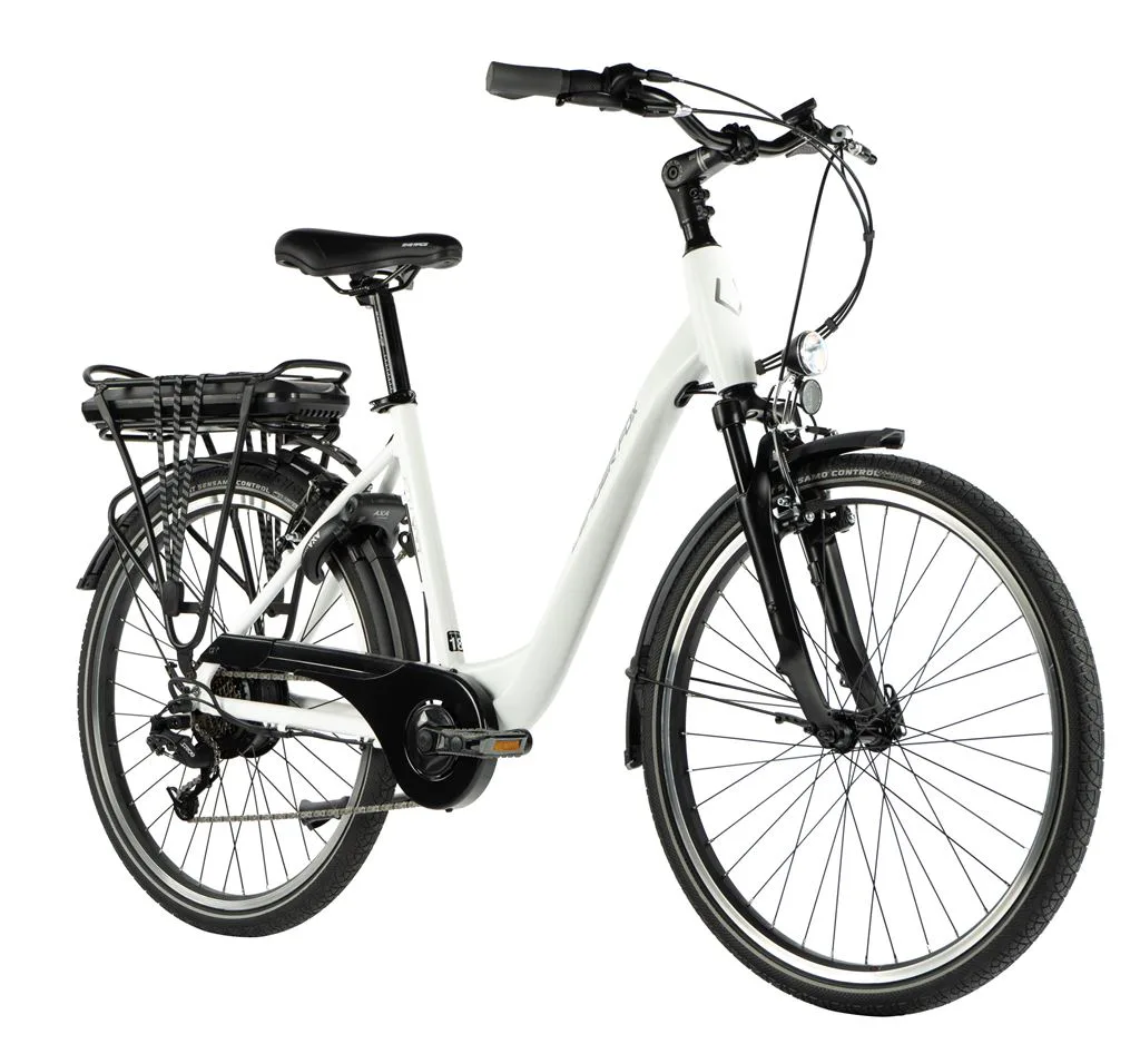 Leader Fox LATONA je městské elektrokolo s elegantním designem, odpruženou přední vidlicí, 26“ koly a sníženým nástupem pro pohodlnou jízdu. Kapacita baterie je 15 Ah (540 Wh).