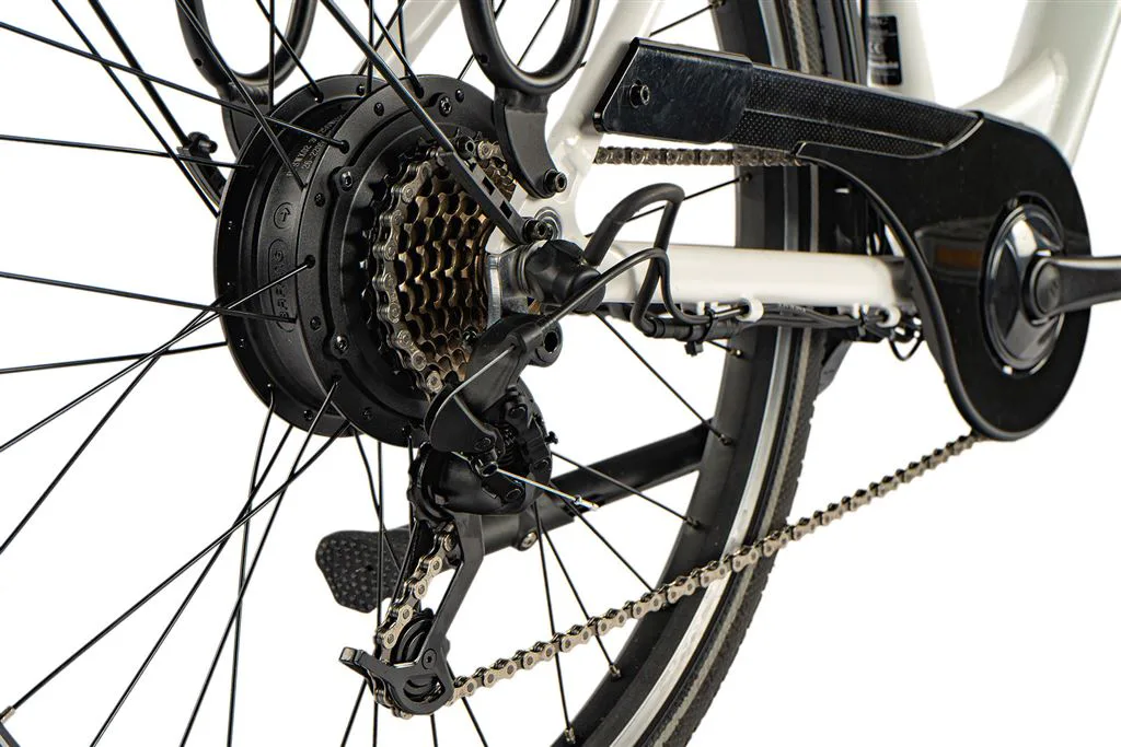 Pohon elektrokola LATONA tvoří zadní motor Bafang 250 W (max. 350 W). Motor je umístěn v zadním náboji a zajišťuje výborné jízdní vlastnosti se silným výkonem.
