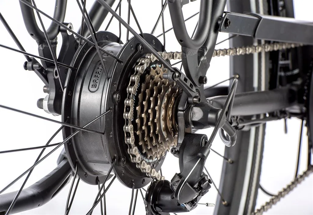 Pohon elektrokola LOTUS tvoří zadní motor Bafang 250 W (max. 350 W). Motor je umístěn v zadním náboji a zajišťuje výborné jízdní vlastnosti se silným výkonem.