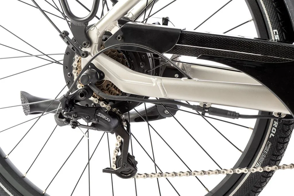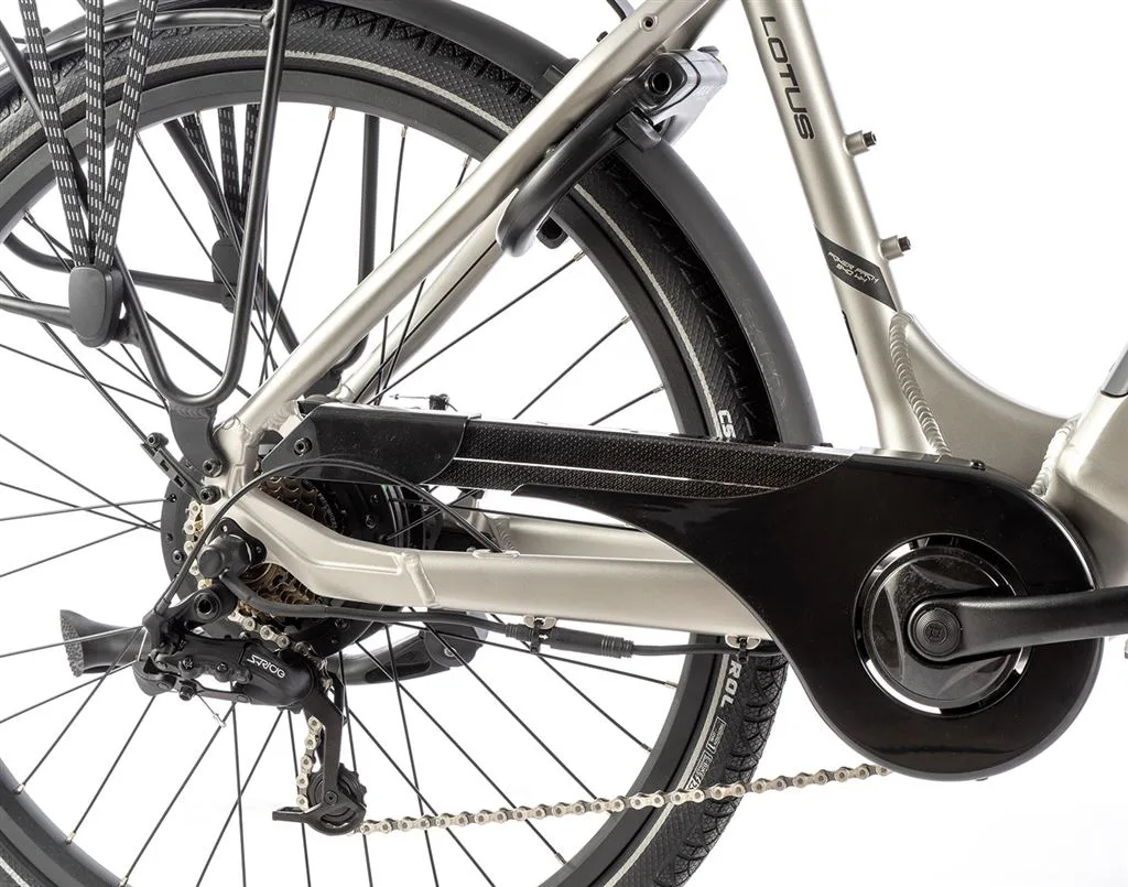 Pohon elektrokola LOTUS tvoří zadní motor Bafang 250 W (max. 350 W). Motor je umístěn v zadním náboji a zajišťuje výborné jízdní vlastnosti se silným výkonem.