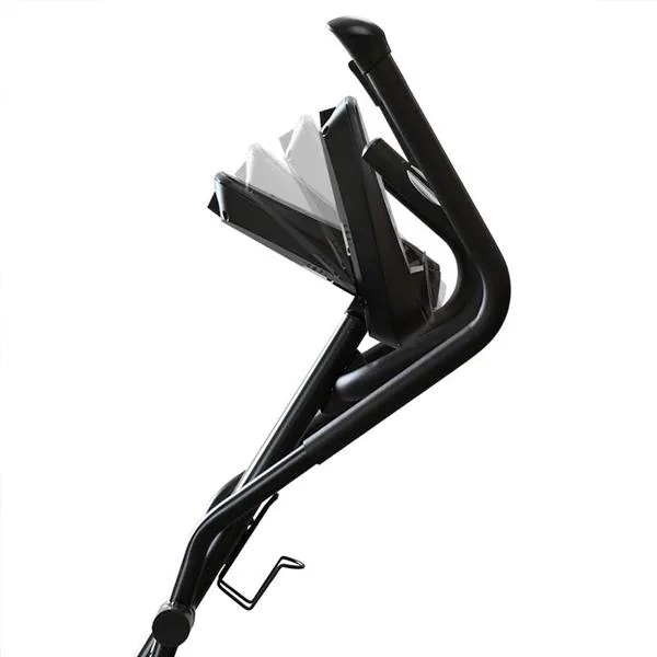 Trenažér HMS Premium H1742 má elektronicky ovládanou magnetickou brzdu, zátěž se reguluje automaticky v 16 stupních. Sklon lze nastavit v 5-ti stupních a délka kroku je 51 cm.