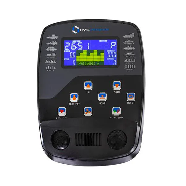 Eliptický trenažér HMS Premium H1742 je vybaven vlastním generátorem energie a nepotřebuje tak připojení do elektrického zdroje. Energie se vytváří při cvičení na trenažéru. Produkty značky HMS Premium jsou charakteristické nejvyšší kvalitou a funkčností a celou řadou možných nastavení. Trenažér je opatřen LCD displejem s 12 přednastavenými programy. Díky setrvačníku v přední části stroje o celkové hmotnosti 9 kg a systému elektromagnetické zátěže má eliptický trenažér komfortní, plynulý a zcela tichý chod.