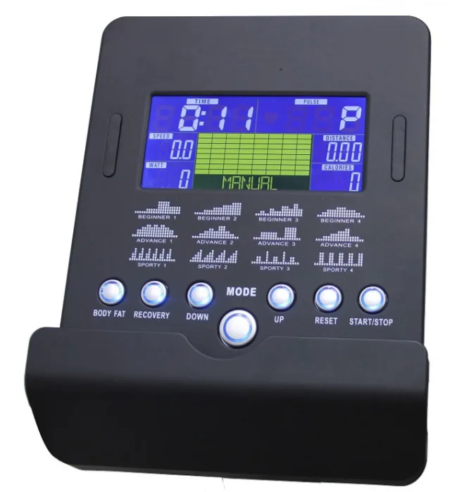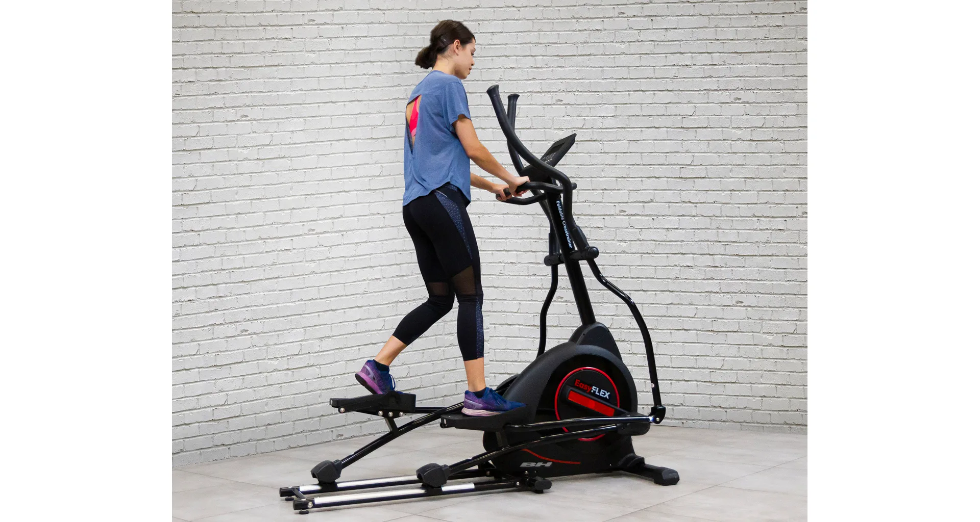 Eliptický trenažér BH Fitness EesyFlex je vybaven přehledným počítačem s držákem na tablet/smartphone, senzory na měření tepové frekvence, transportními kolečky a vyrovnávači nerovnosti.