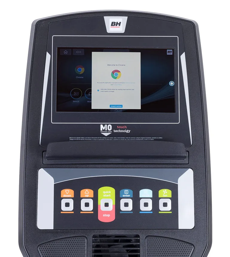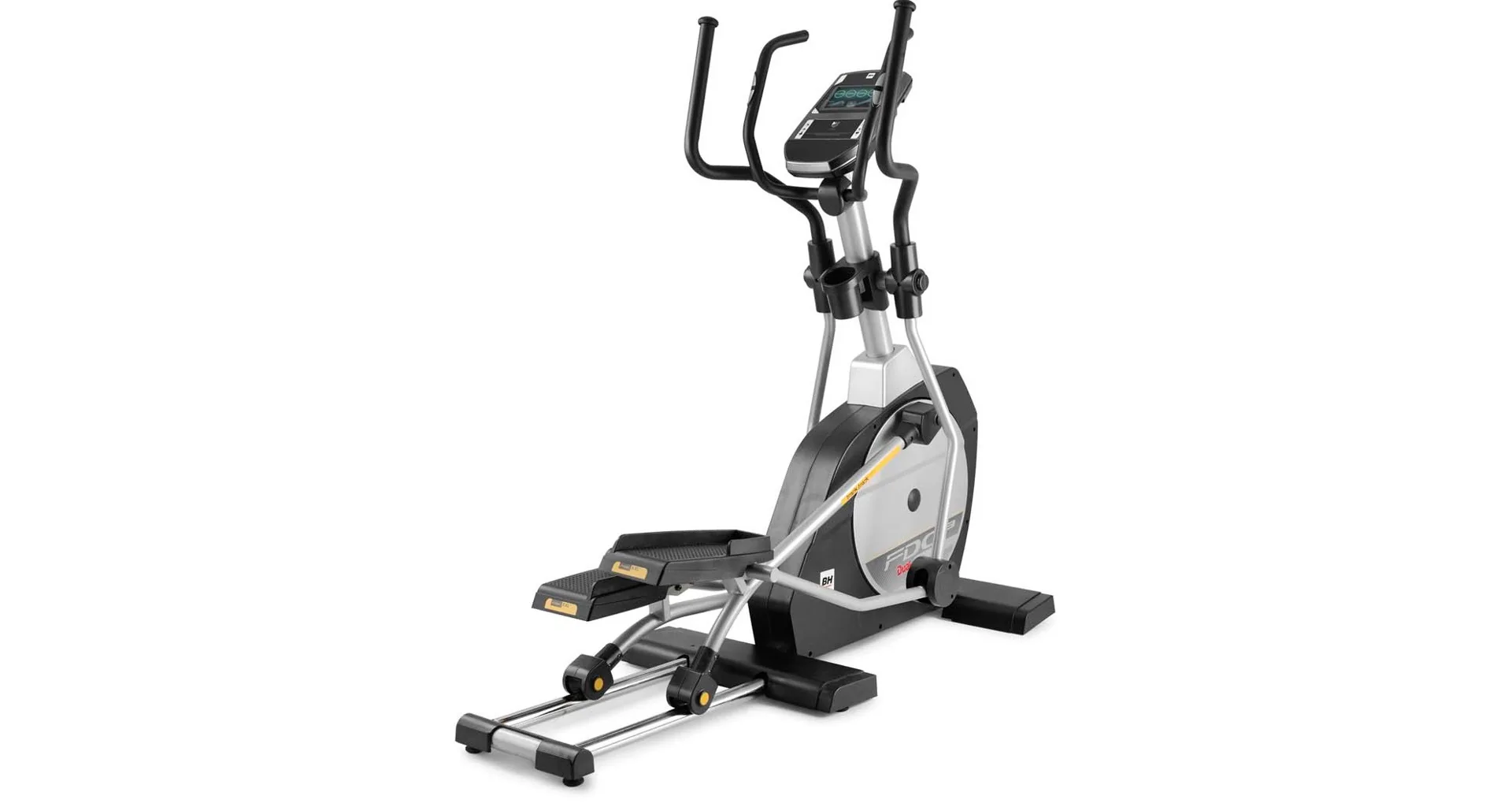Eliptický trenažér BH Fitness FDC19 TFT je vybaven přehledným počítačem s moderním dotykovým displejem a wifi, držákem na tablet/smartphone, senzory na měření tepové frekvence, transportními kolečky a vyrovnávači nerovnosti.