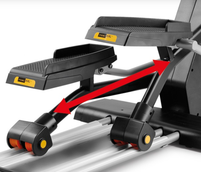 Délka kroku BH Fitness i.FDC20 Studio je univerzální 51 cm a rozteč pedálů je 10 cm. Pedály jsou z kvalitního odolného plastu s protiskluzovou plochou. Všechny kloubní spoje jsou opatřeny průmyslovými ložisky pro dlouhodobou životnost a bez problémové fungování i při pravidelném a náročném tréninku.