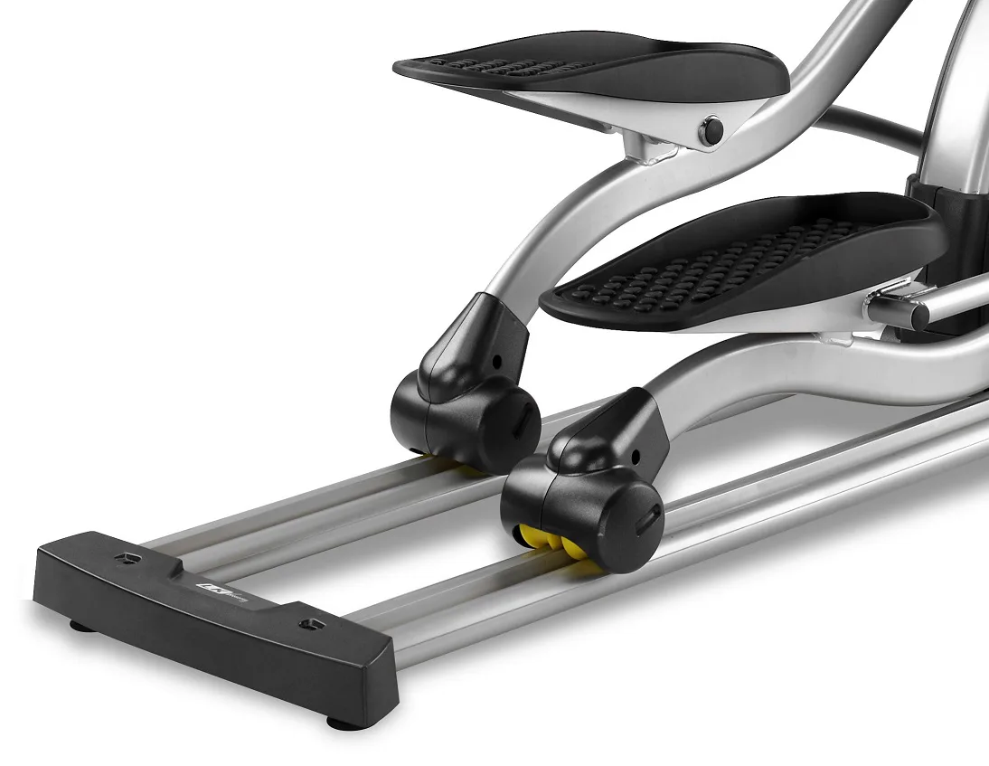 Profesionální systém odporu a řemenový převod Poly-V Belt zaručuje maximální plynulost chodu a dostatečný rozsah zátěží pro začátečníky i výkonnostní sportovce. Plynulost chodu zajišťuje kalibrovaný 25 kg těžký setrvačníkový systém s 20 stupni odporu nastavení zátěže.Délka kroku je 51 cm a rozteč mezi pedály je pouhých 7 cm, což je ideální jak pro menší, tak i vysoké postavy.