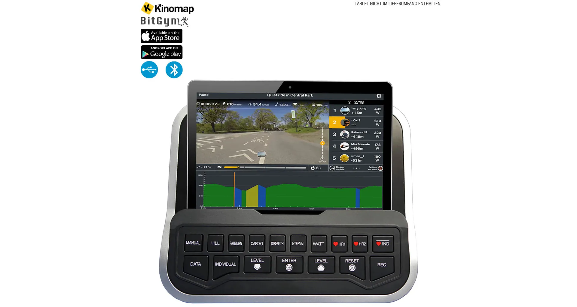 Finnlo Loxon XTR BT disponuje počítačem s LCD displejem a integrovaným držákem na tablet / smartphone.