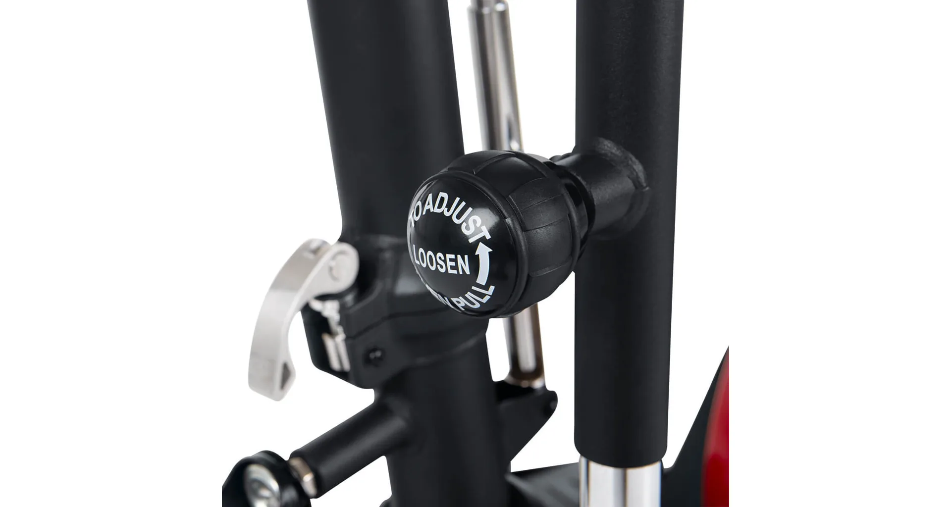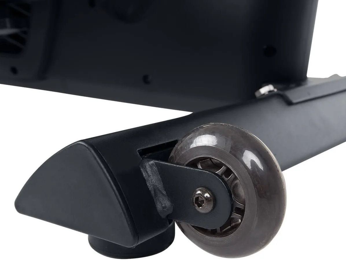 Dále nabízí k využití vyrovnávače nerovnosti, transportní kolečka či úchopové madlo pro snadnou manipulaci s trenažérem.