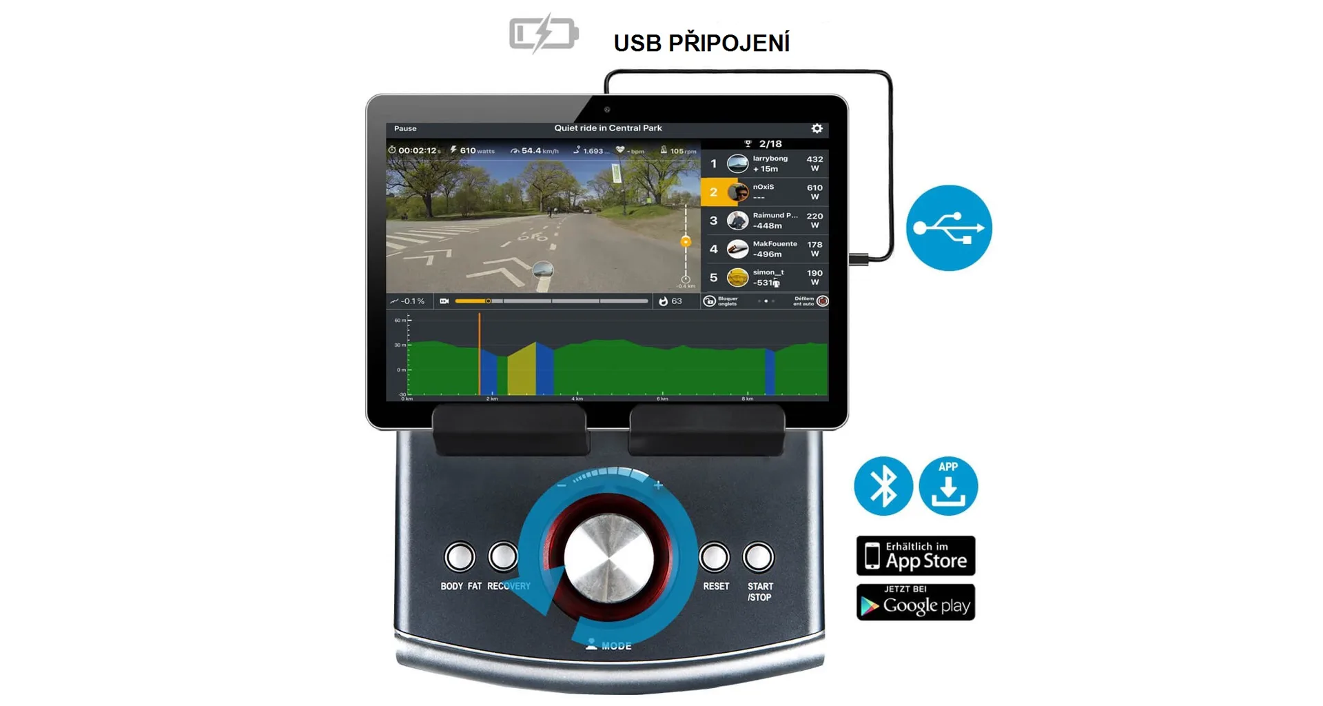 Rozsah elektronicky ovládané zátěže je v 16-ti stupních (v rozmezí 10 - 350 W nezávislé na rychlosti a závislé na rychlosti až 400 W) je dostatečný jak pro ženy, tak i pro muže.