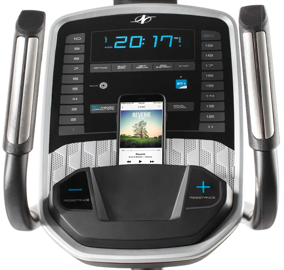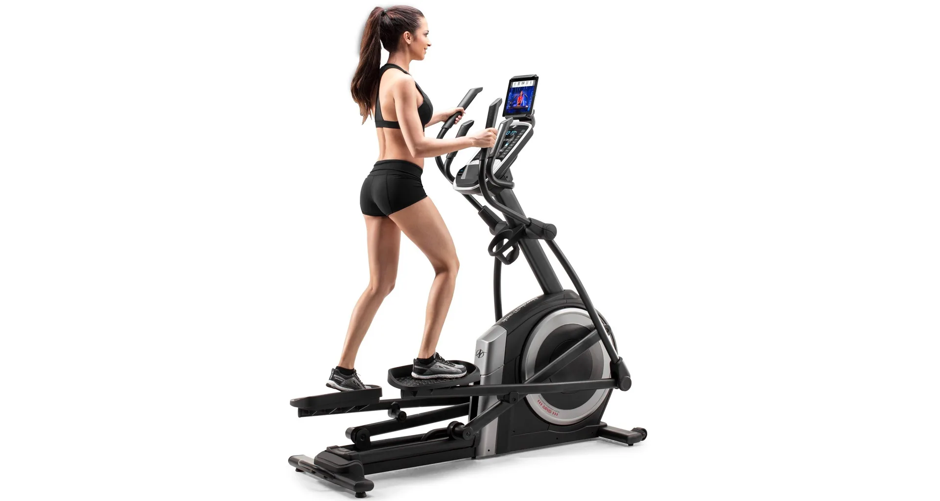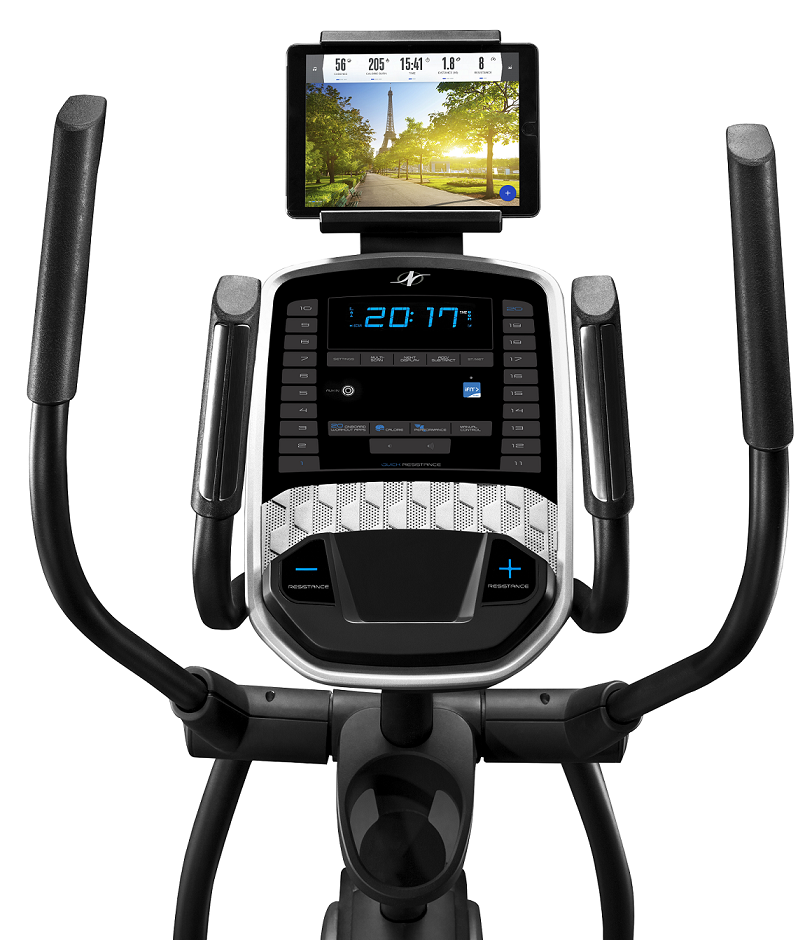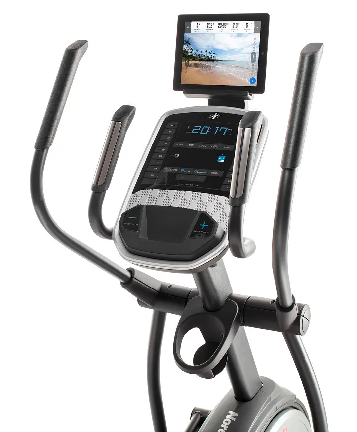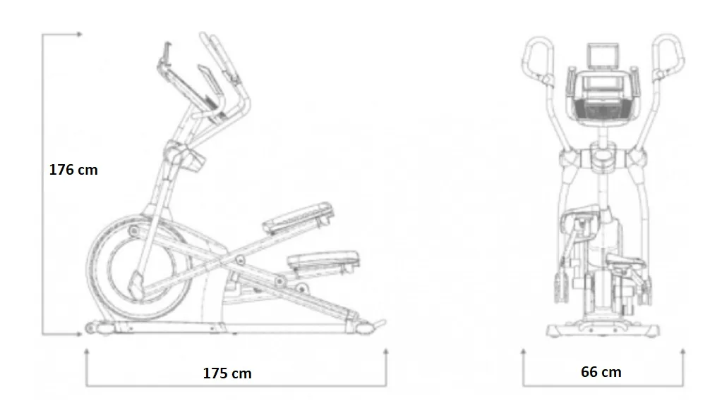 Eliptický trenažér NORDICTRACK C 5.5 je robustní cross se setrvačníkem v přední části stroje a možností ručbního nastavení sklonu pojezdu.