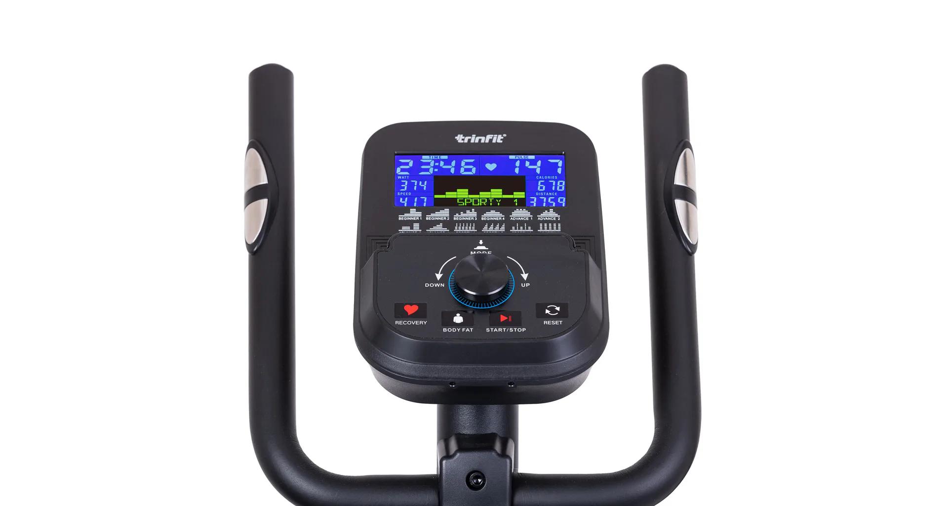 Pro maximální efektivitu cvičení nabízí TRINFIT Monta C500i různé programy zaměřené na měření a regulaci tepové frekvence, včetně HRC programů a funkce Body Fat. LCD displej přehledně zobrazuje klíčové tréninkové údaje, jako jsou čas, vzdálenost, rychlost, spálené kalorie a srdeční frekvence.