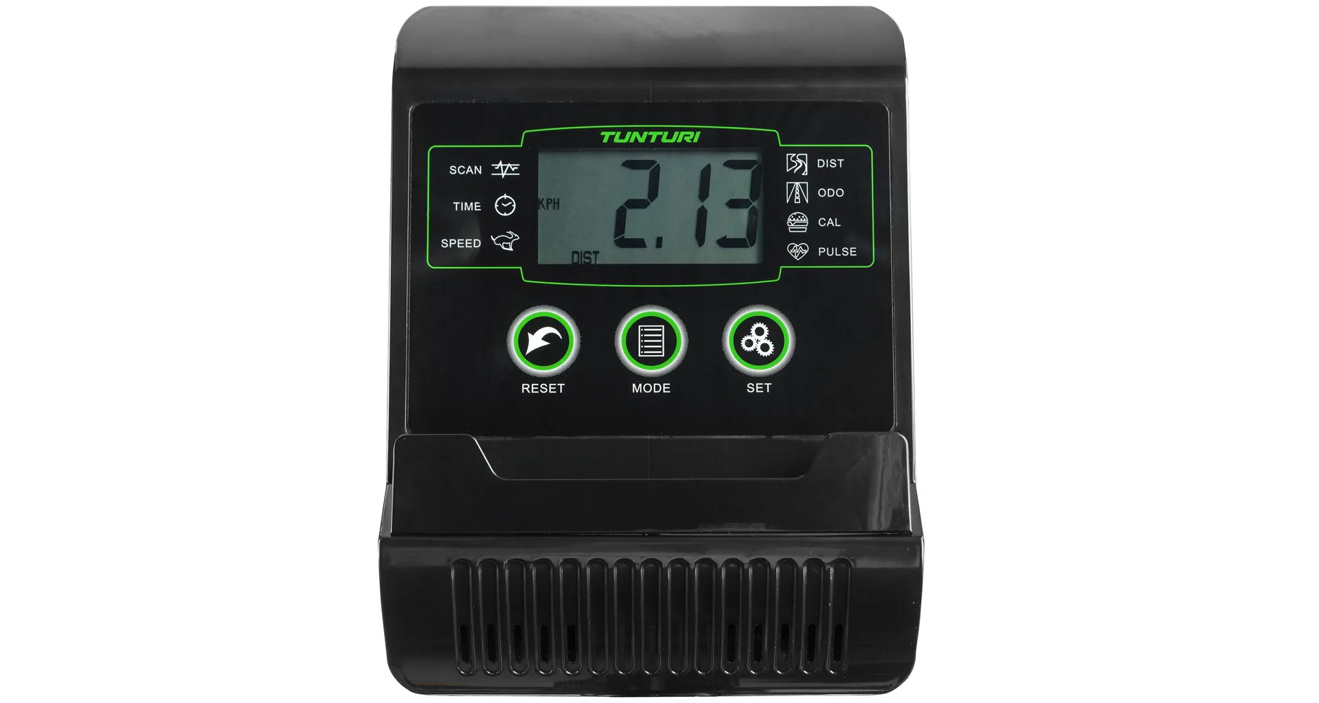 TUNTURI Cardio Fit C30 Crosstrainer Rear je kvalitní eliptický trenažér, který je určen do ryze domácího prostředí. Odpor je vytvářen magnetickou brzdou, která je regulována manuálním otočným regulátorem v rozmezí 1-8. Šlapací střed s klikami je osazen průmyslovými ložisky pro dlouhotrvající životnost a nabízí nastavitelné pedály s krokem dlouhým 35 cm a roztečí 20 cm.