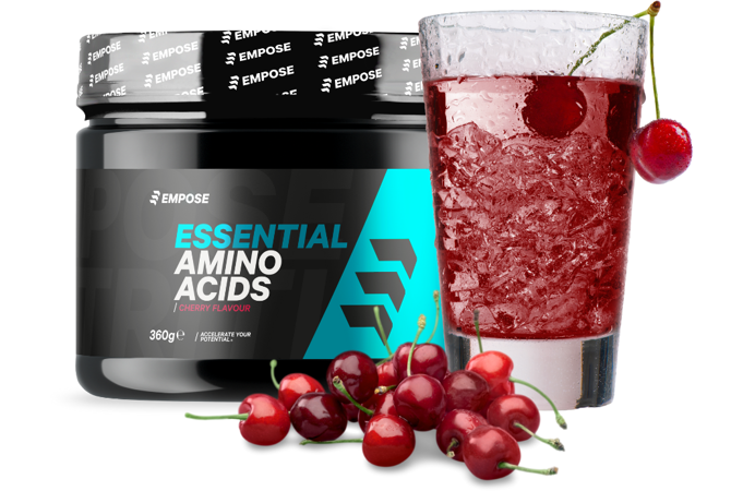 EMPOSE EAA Powder obsahují všechny esenciální aminokyseliny, které si tělo neumí vyrobit a potřebuje je k regeneraci. Jedna dávka obsahuje více než 9 gramů esenciálních aminokyselin, z nichž každá má svůj specifický účinek. Zlepšují váš sportovní výkon a také přispívají k regeneraci a budování svalové hmoty.