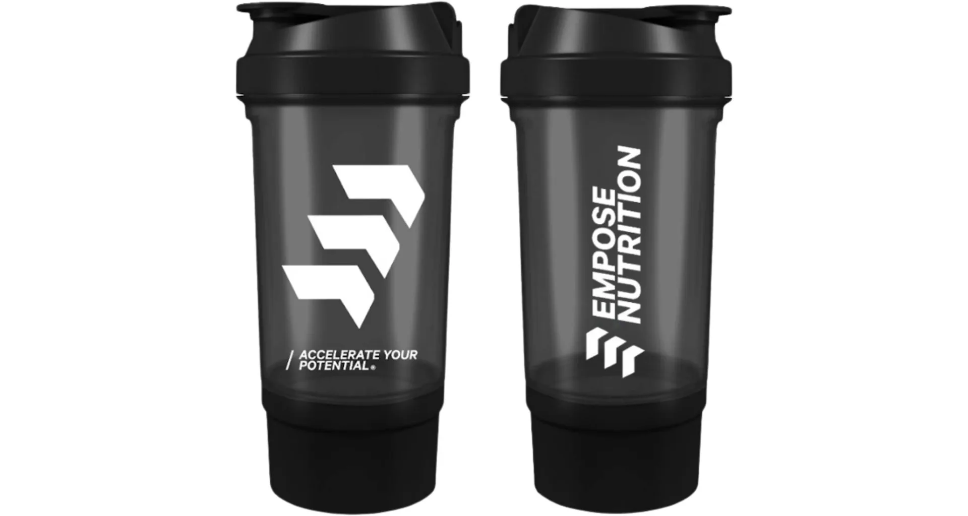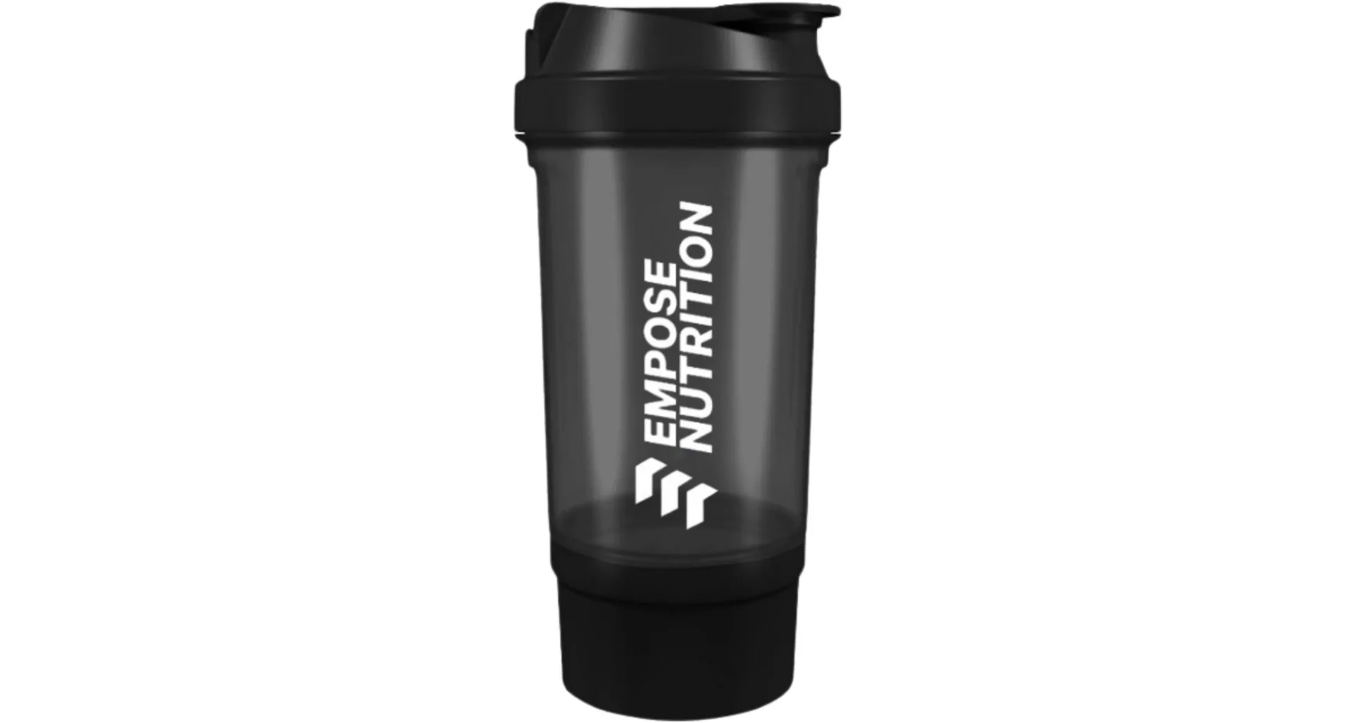 EMPOSE Shake Beker je praktický dvojdílný šejkr pro přípravu koktejlů se zaklapávacím uzávěrem. Objem shakeru je 500 ml s patrem na práškové doplňky výživy (150 ml). Spodní část slouží na prášek, tablety a kapsle, vrchní na přípravu nápoje. Mřížka zajistí kvalitní promíchání koktejlu.