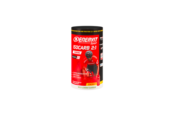 Enervit Isocarb obsahuje optimální kombinaci maltodextrinu a fruktózy pro zajištění příjmu vysoké dávky energie, která je v průběhu času stabilnější. Toho je docíleno díky specifickému druhu maltodextrinu DE1 Agenanova®, který zajišťuje bezproblémovou vstřebatelnost a současně prodloužený přísun energie ze sacharidů. Enervit Isocarb byl vyvinutý ve spolupráci s profesionálními cyklistickými stájemi UAE Team Emirates (1. místo na Tour de France 2020 - Tadej Pogačar) a Trek-Segafredo (3. místo na Tour de France 2020 - Richie Porte). Neobsahuje žádná barviva, umělá sladidla ani umělá aromata.