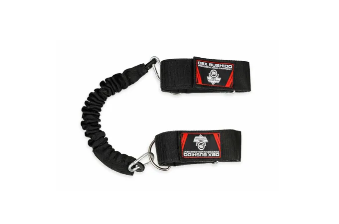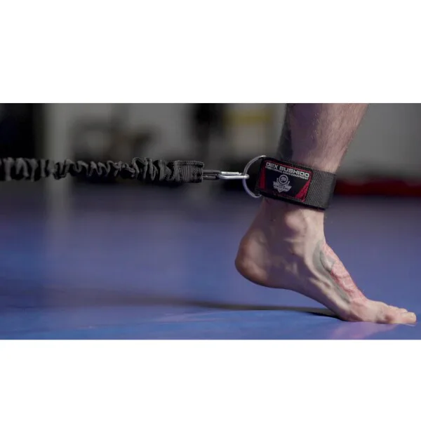 DBX BUSHIDO P3 DBX Foot Work je expandér, který se používá ke zlepšení rychlosti, dynamiky a techniky práce nohou. Odpor expandéru navíc napomáhá vybudovat návyk, kdy se po kopu vrací noha zpět na pozici. Na odporovou gumu je nasunut límec z velice odolné textilie, díky které nedochází k opotřebení expandéru během kontaktu s tělem cvičence. Konce jsou opatřeny karabinami pro připnutí k popruhům. Popruhy na nad kotníky jsou opatřeny suchým zipem.