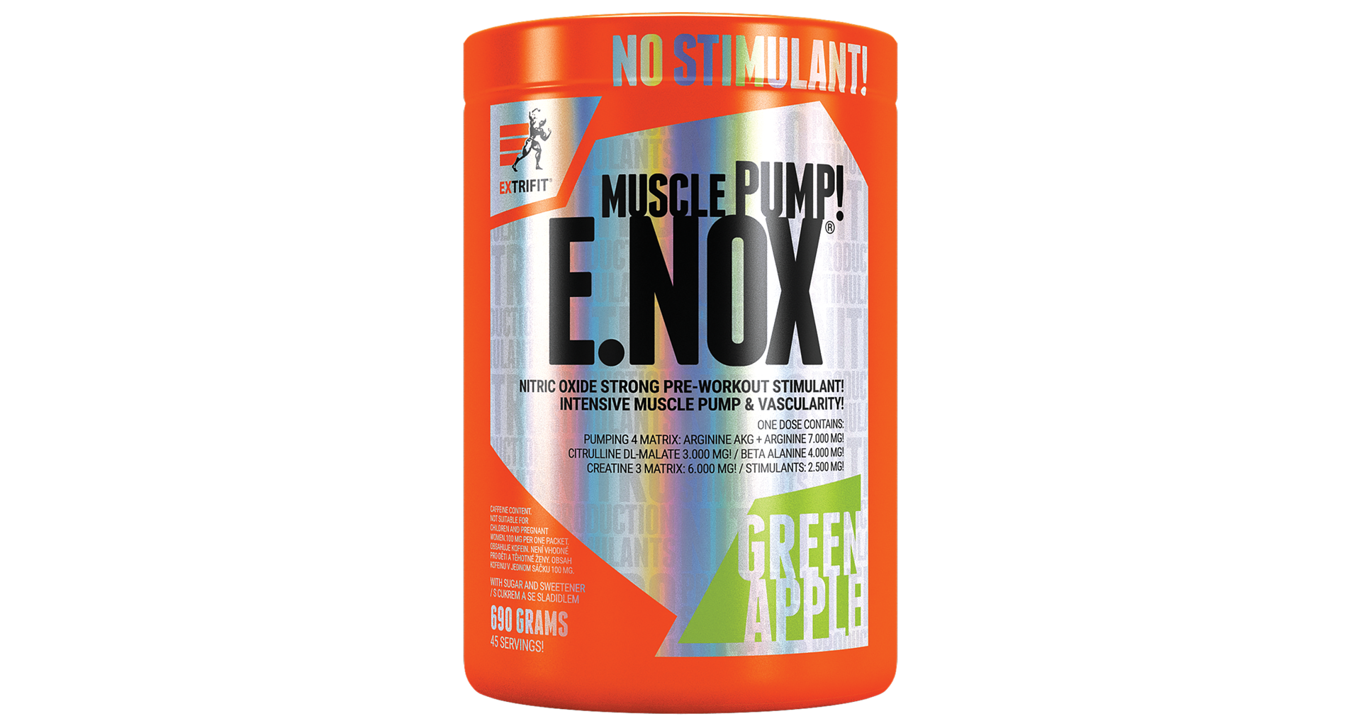 E.nox Shock® je představitelem nejmodernější generace produktů na bázi NO. Obsahuje unikátní kombinaci účinných látek ve vysokém množství: arginin AKG - alfaketoglutarát (10870 mg ve 100 g produktu), arginin bázi (4348 mg ve 100 gramech produktu), citrulin (6522 mg ve 100 gramech produktu) a beta alanin (8696 mg ve 100 g produktu). Chcete poznat novou dimenzi tréninků, intenzitu, jakou jste ještě nezažili? Toužíte po maximálním napumpování svalů? E.nox Shock je oblíbeným suplementem ve své kategorii, využívají jej naši kulturisté, jako jsou Petr Března nebo Slavoj Bednář.