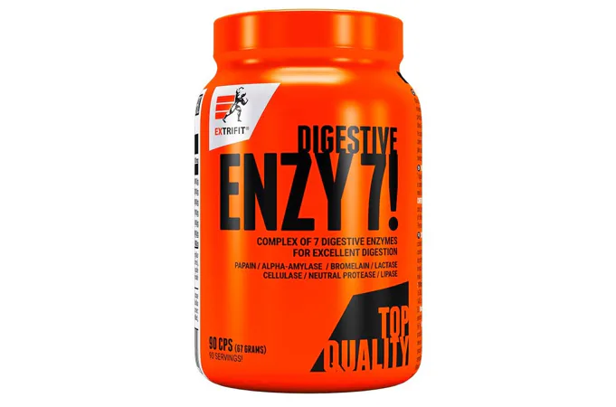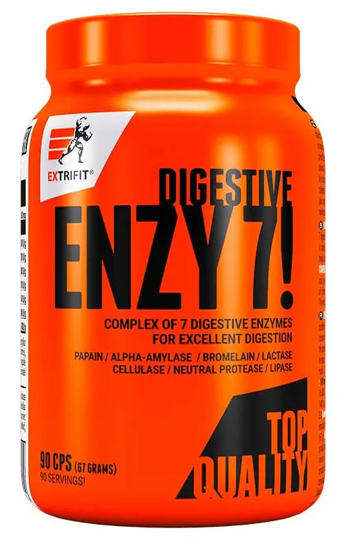 Vynikající pomocník pro dokonalé trávení všech živin. Bílkovin, sacharidů i tuků. Enzy 7! Digestive Enzymes je naprosto unikátní a nejúčinnější produkt svého druhu. Tento výrobek Vás zbaví zažívacích obtíží. Obsahuje komplex 7 trávicích enzymů pro lepší trávení bílkovin, sacharidů a tuků. Obsahuje enzymy papain, alfa-amylázu (Aspergillus oryzae), bromelain, laktázu (Aspergillus oryzae), celulázu (Trichoderma reesei), neutrální proteázu (Bacillus licheniformis) a lipázu (Aspergillus aryzae).