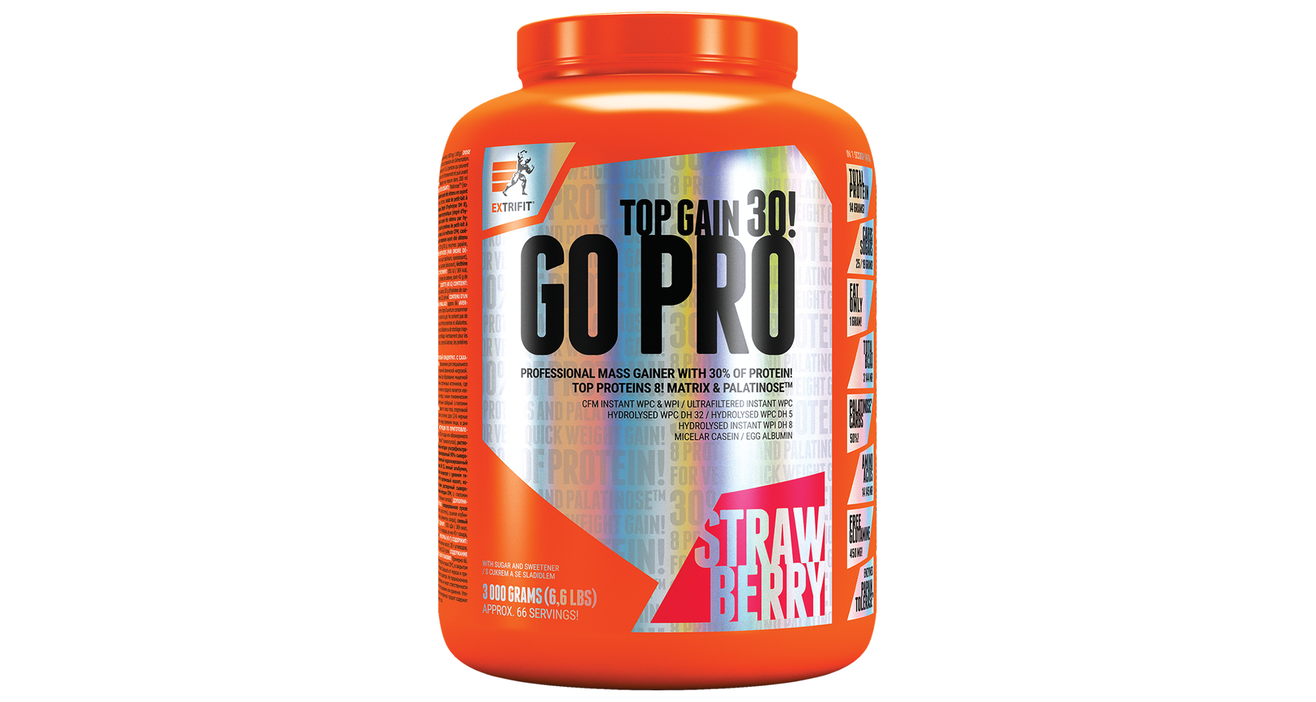 Go Pro 30 je sportovní nápoj určený pro budování svalové hmoty a síly. Obsahuje 6 proteinových zdrojů (30 % bílkovin), z nichž všechny jsou v produktu zastoupeny stejným dílem, a to 16,667 %: syrovátkový proteinový koncentrát CFM, syrovátkový proteinový izolát CFM, enzymaticky hydrolyzovaný syrovátkový protein s nejvyšším stupněm hydrolýzy DH32, micelární kasein, hovězí proteinový izolát a vaječný albumin. Go Pro 30 obsahuje také mimořádně vysokou dávku L-glutaminu (2807 mg v jedné odměrce). Sacharidová složka produktu Go Pro je tvořena izomaltulózou (palatinózou), která tvoří 50 % obsahu sacharidů produktu a je doplněna maltodextrinem a dextrózou.