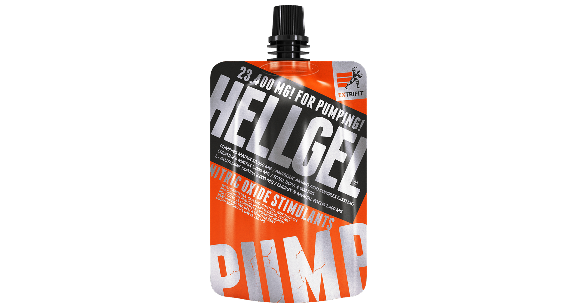Hellgel ® dále obsahuje větvené aminokyseliny leucin, isoleucin a valin, které chrání svalovou hmotu při náročném tréninku, a aminokyseliny glutamin a glutamin alfaketoglutarát AKG (glutamin je neesenciální aminokyselina, která je bohatě zastoupena ve svalové tkáni; při intenzivním tréninku dochází k vyšší spotřebě glutaminu ve svalu, proto je při náročném výkonu a snaze o nárůst svalové hmoty vhodná jeho suplementace). Stimulační účinek suplementu Hellgel ® na nervovou soustavu zajišťují látky taurin, kofein a extrakt ze zeleného čaje, které podpoří Vaši koncentraci na trénink. Přípravek má formu gelu, který se výborně vstřebává, a navíc je prakticky dávkován v jednorázových sáčcích.