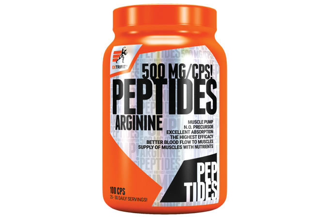 Pumpa, prokrvení, tvorba oxidu dusnatého! Základ suplementace každého kulturisty. Mimořádně silný arginin v peptidové formě. V jediné kapsli Peptides Arginine od Extrifitu je 500 mg peptidů argininu. V současnosti je tato forma argininu považována za vůbec nejkvalitnější, má nejvyšší účinek a vstřebatelnost.