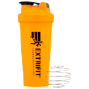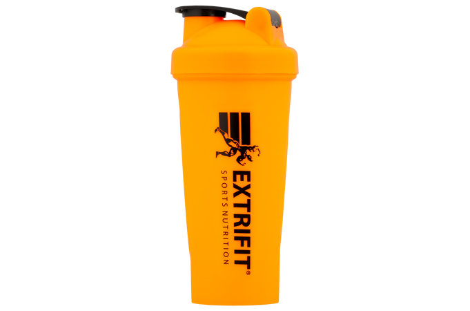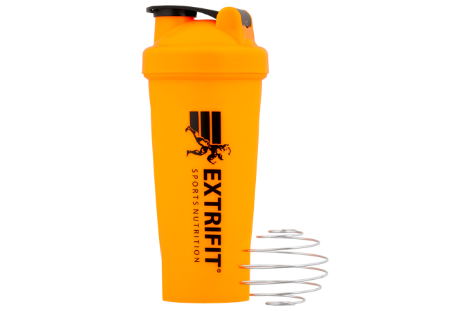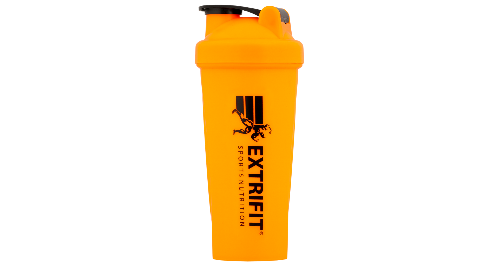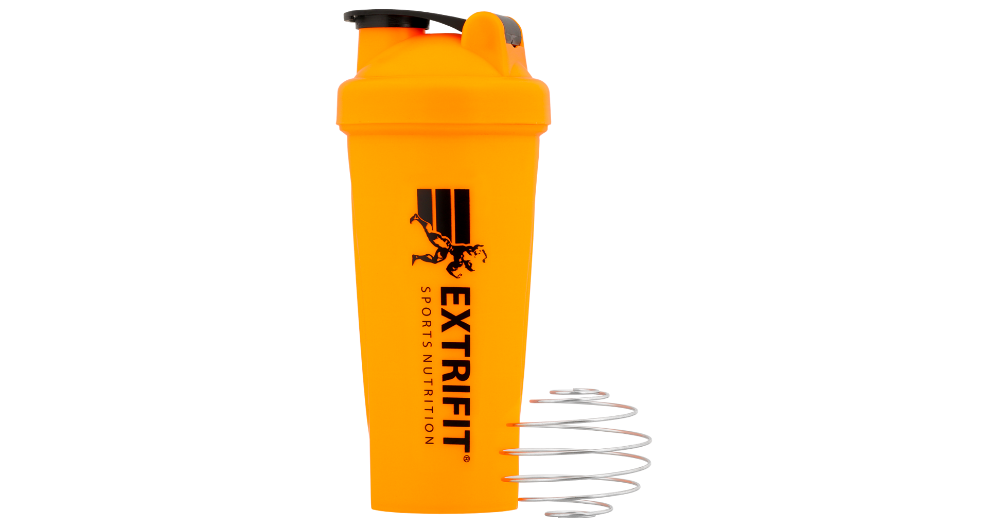 Šejkr je oranžové barvy o objemu 600 ml, štíhlý, směrem ke dnu se zužuje. Uzávěr šejkru je šroubovací, malé víčko je zaklapávací. Po stranách jsou protiskluzové tvarované části, takže se šejkr dobře drží. Vzadu najdete rysky v ml/oz pro odměření a průhled pro vizuální kontrolu náplně, vpředu je logo Extrifit. Šejkr obsahuje pružinovou kuličku pro lepší rozmíchání nápoje. Obsah přes kvalitně vyřešené šroubování neprotéká. Náplň šejkru je vidět přes zprůsvitněný bok s měrnou stupnicí. Objem šejkru zobrazený na poslední rysce je 600 ml.