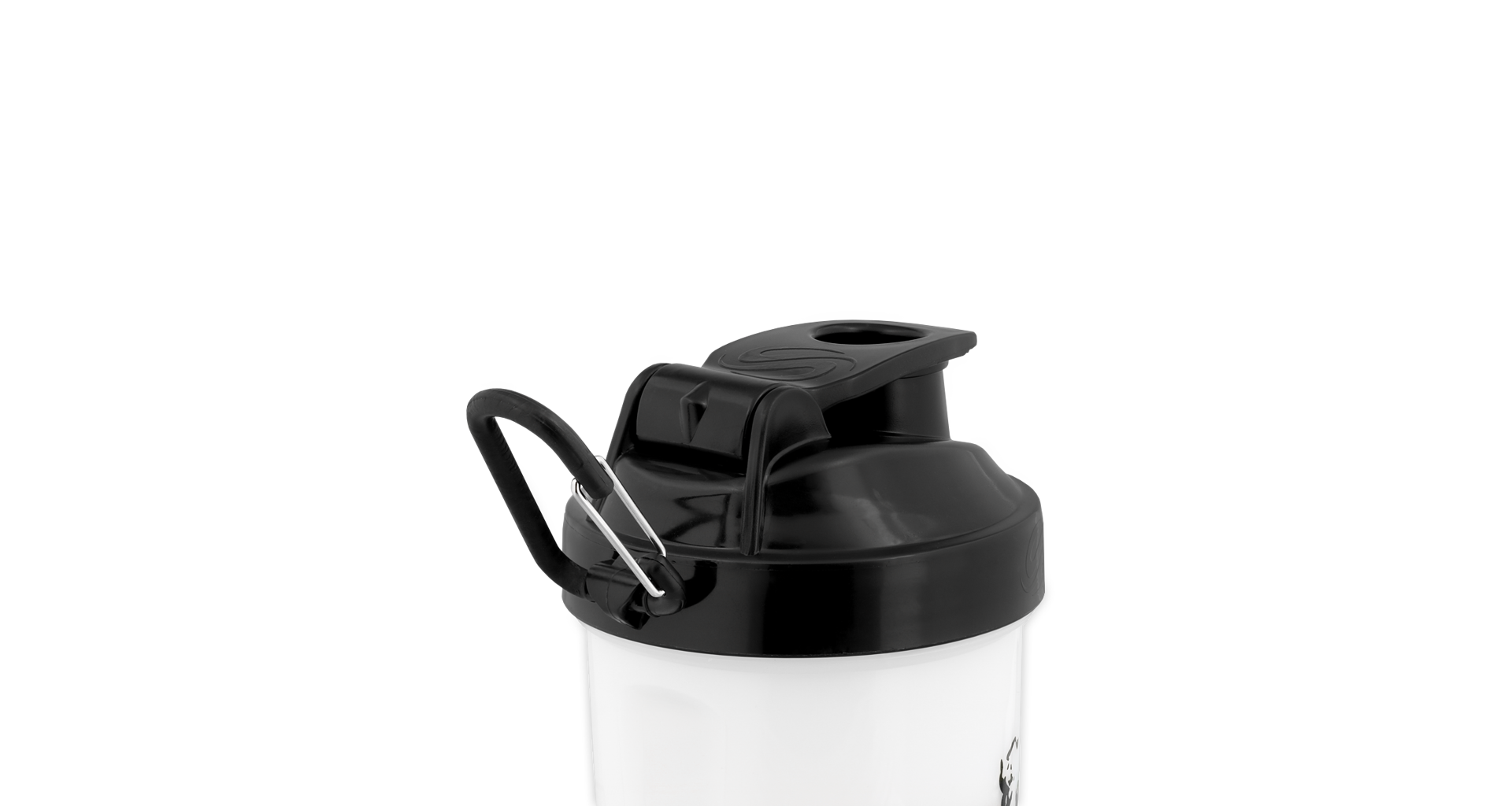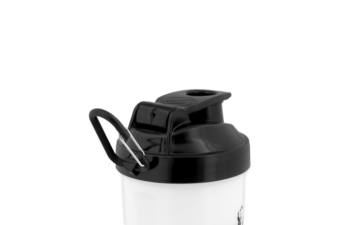 Jeden z odnímatelných zásobníků obsahuje vloženou přihrádku se čtyřmi odděleními na tablety či kapsle, přihrádku lze ale i vyjmout, objem takto získaného prostoru (např. pro odsypání proteinu nebo gaineru) je 150 ml. Druhý (spodní) zásobník má objem dalších 200 ml. Samotný šejkr má stupnici od 100 do 600 ml.