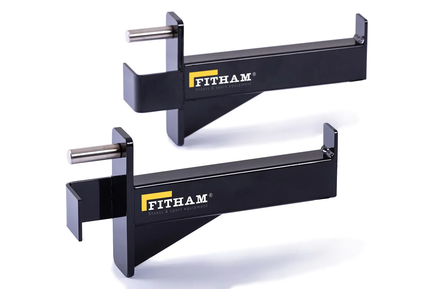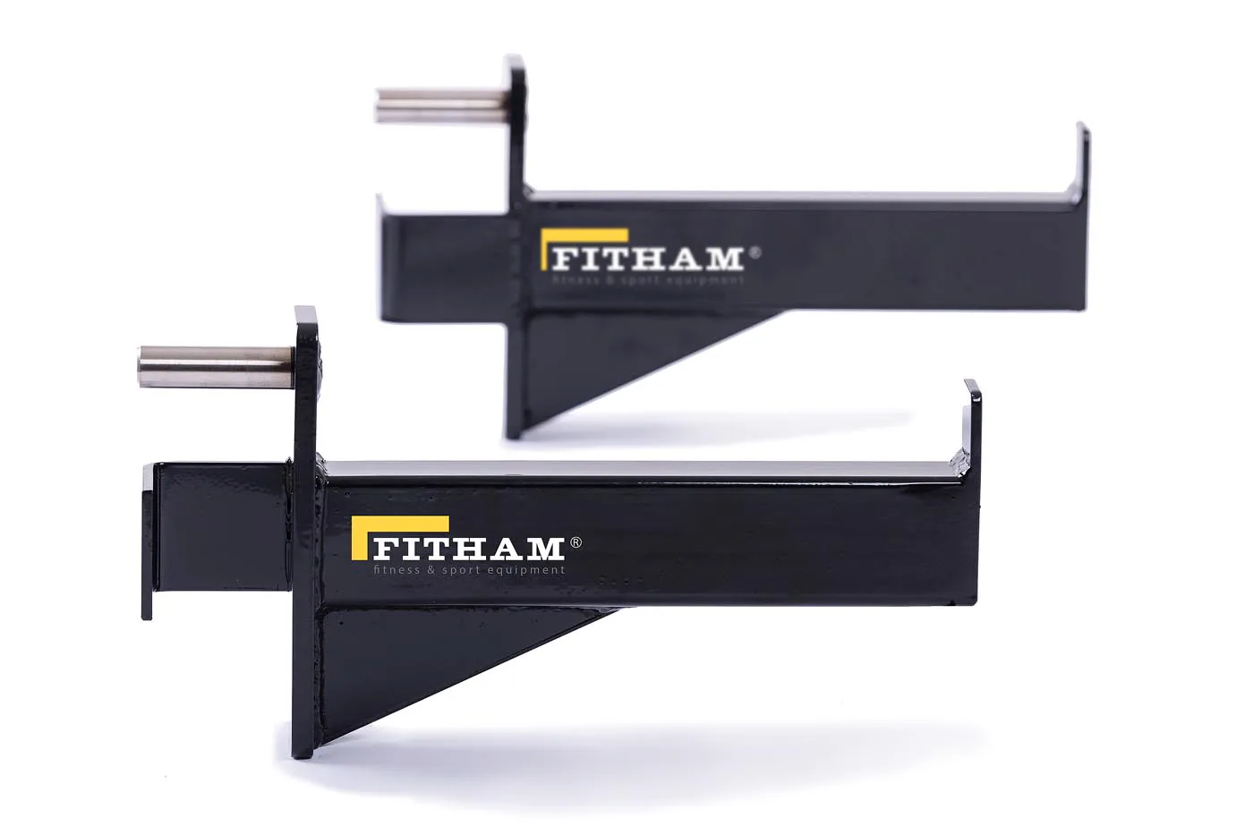 Dorazy na činku pro doplnění systému posilovacích konstrukcí FITHAM CROSSFIT. Hlavní vlastností bezpečnostního úchytu je jeho pevnost při pokládání velkých vah s osou. Slouží jako pojistný doraz v dolní hranici rozsahu při dřepech, bench pressu a dalších cvicích s volnou osou. Je lehký a jednoduchý na přepravu. Tento komponent není součástí kompletních hrazd či klecí.